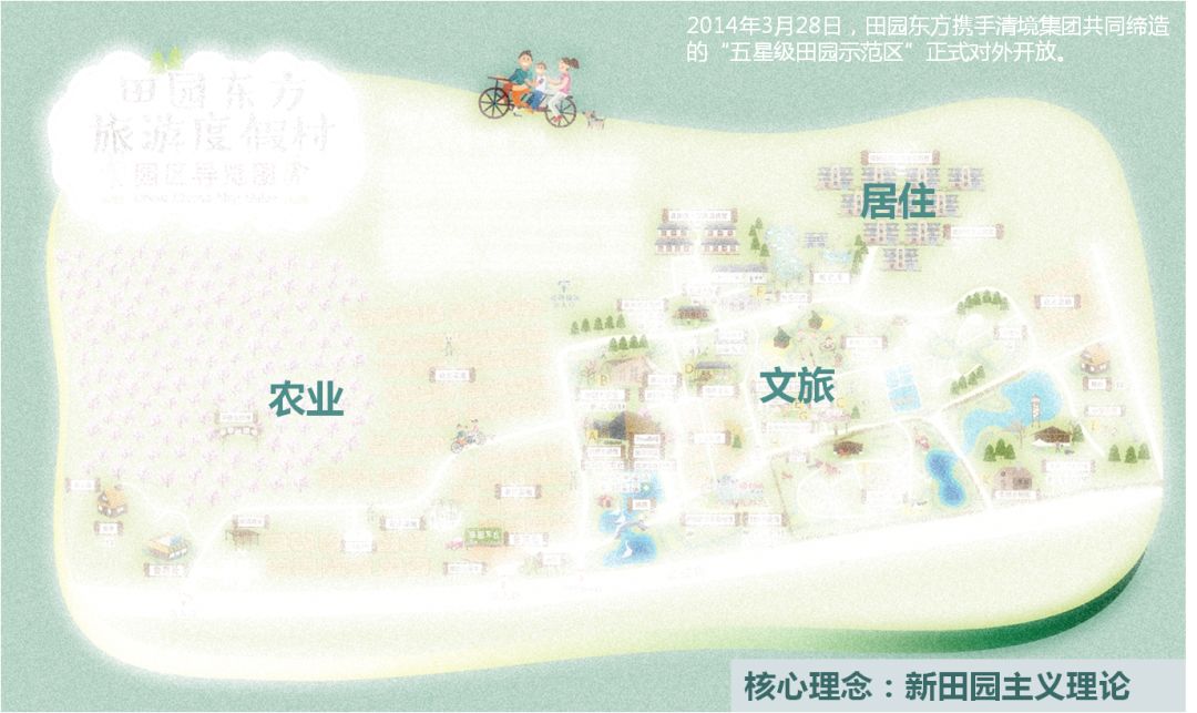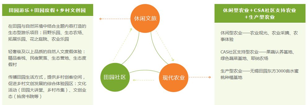 通过公司化、规范化、科技化运作,发展现代农业产业园,形成当地社会的基础性产业;规划打造新兴驱动型产业——文旅产业,以生态自然型多样的旅游产品和度假产品组合;开展田园社区建设,服务原住民、新住民和游客,最终形成的是一个新的社区。