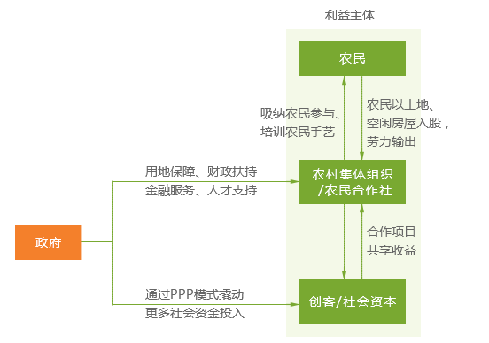 【经营机制】政府+农村集体组织+农民合作社+创客+社会资本+农民