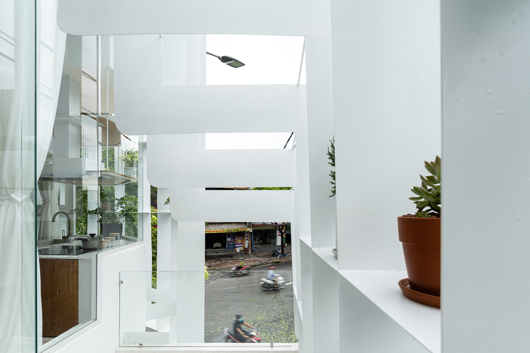 该项目位于顺化市中心的十字路口旁,由一栋已有18年历史的破旧房屋改造而成。其建筑面积仅35平方米,是由三代人构成的七口之家的生活空间。设计团队花时间谈论并了解了业主的基本需求,在设计Tiam的时候,为每位成员提供了更好的生活水平和有益体验。房屋包含三层楼、一个阁楼、阳台以及露台,其中,一层是业主经营的咖啡馆,其余部分用于居住。