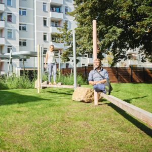 作为拥有 1000 多名居民的住宅区的一部分,游乐场不仅是儿童游乐区。相反,它有可能改善所有居民的生活质量。总体目标是为所有年龄段的人创造一个包容、低障碍的场所,让他们聚集在一起练习认知运动技能。最重要的概念重新解释是将以前许多单独的较小游乐区捆绑成两个中央、包容性的会议空间,将定居点与建筑结构一起构成框架。作为该地区的新核心,“社区游乐场”变得非常重要。它已成为一个社交互动空间,提供玩耍、运动和交流的空间。