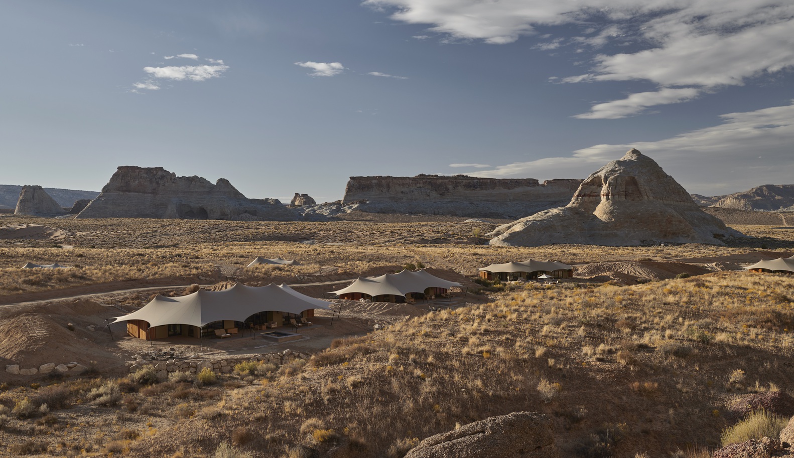 犹他州南部。这是北美有史以来第一个全天候、全年开放的营地,这里共有 10 个豪华帐篷,依偎在