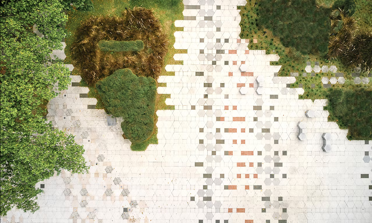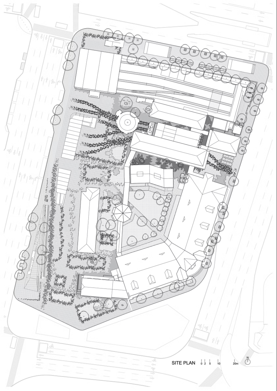 “模糊”、“渐变淡化”和“模糊边缘”的景观设计语言成为一种近似策略,就它们已知的情况而言,没有声称绝对位置。过去的建筑物、结构和铁路轨道的痕迹在博物馆场地上被呈现为模糊的低保真印记,它们的重叠和碰撞讲述了这里一个多世纪的成长和转变的故事