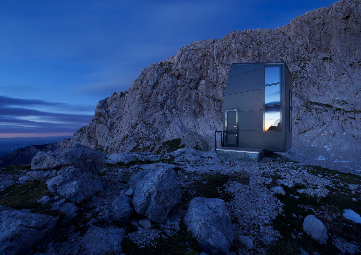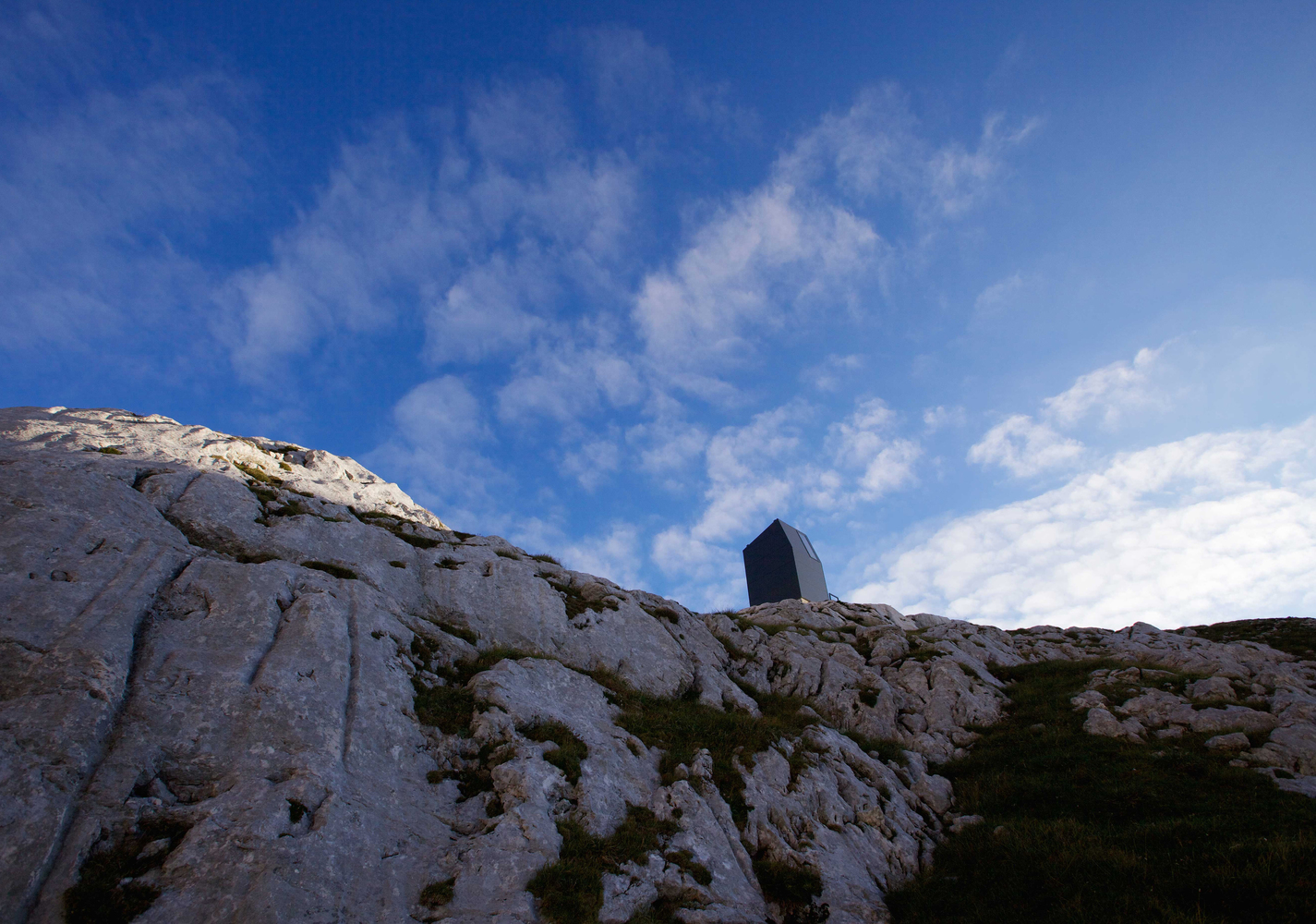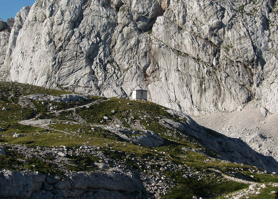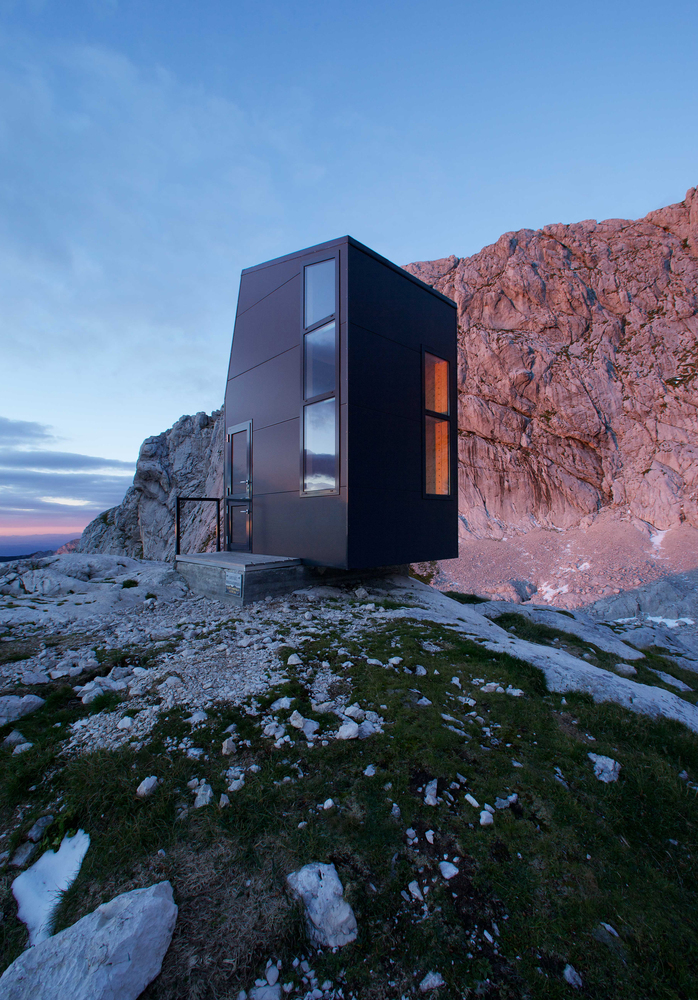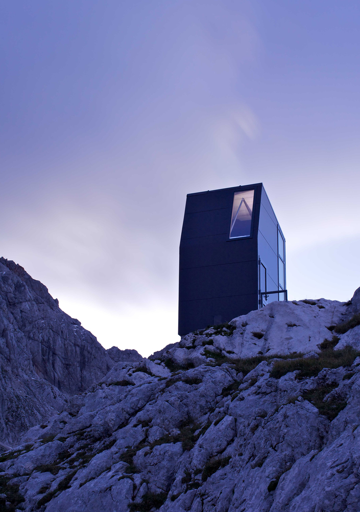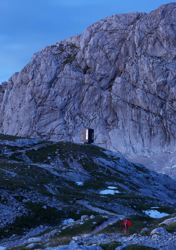 营地是Grintovec山下广阔高原的一个地标。其外观醒目,呈现为黑色的垂直体量,无论是白雪皑皑的寒冬还是岩石嶙峋的盛夏,宿营地都很容易被发现。