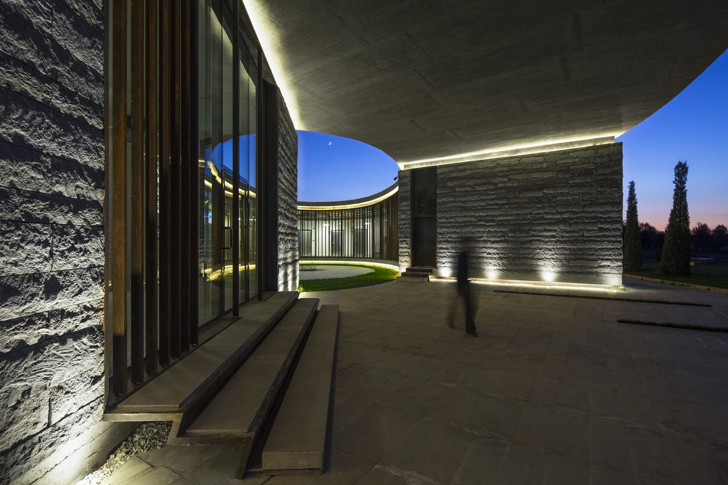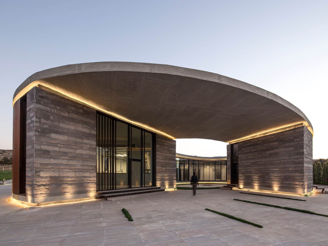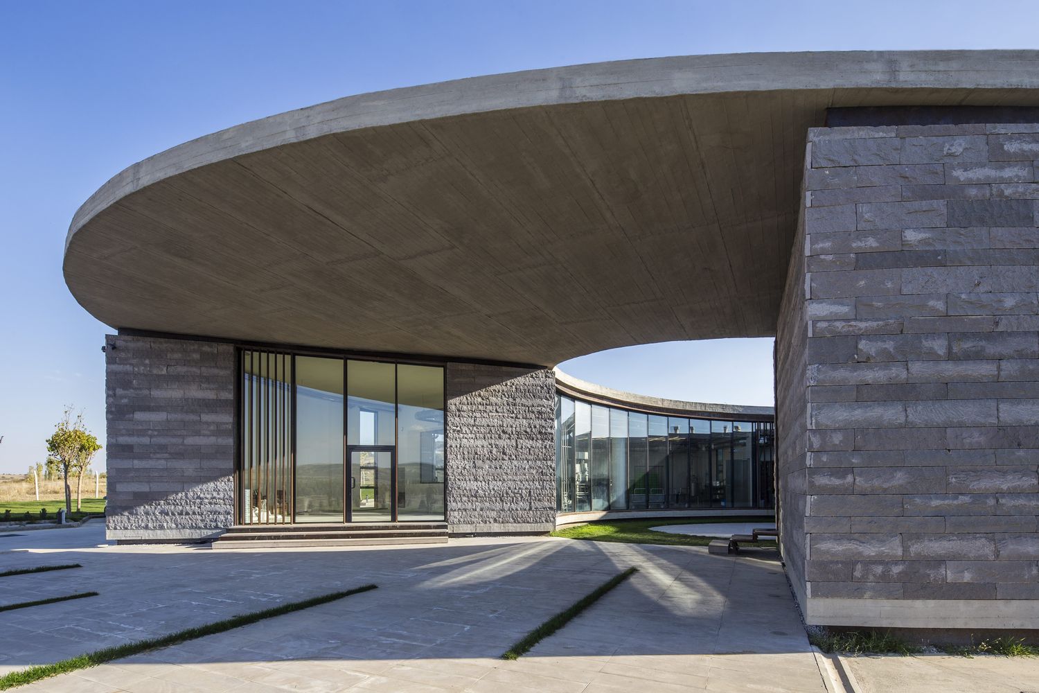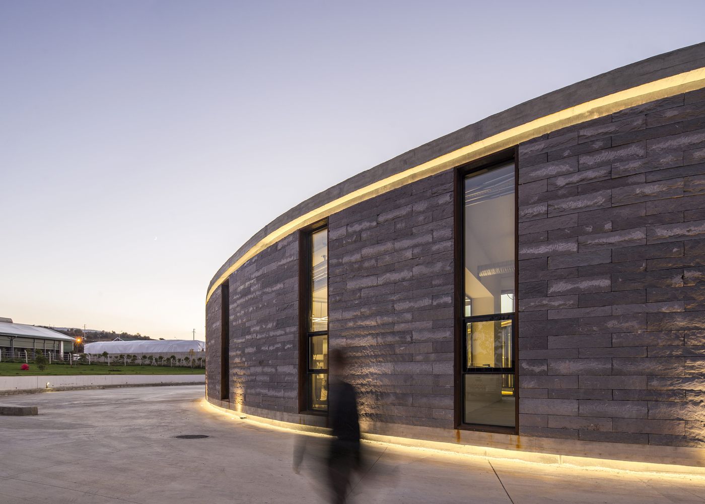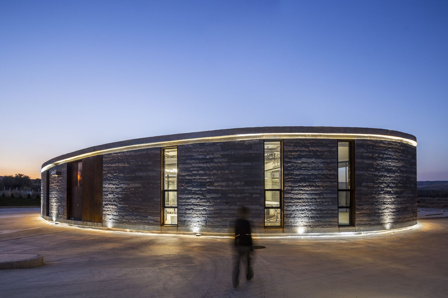 通过在细部中添加使用Corten钢,丰富了当地材料(如Afyon石)的使用,强调出了建筑的当代工业特性。通过混合使用暴露的混凝土,天然石材,透明玻璃和Corten钢等,在这个椭圆形的建筑中展现出了一种使建筑固生于其场地的现代理念。