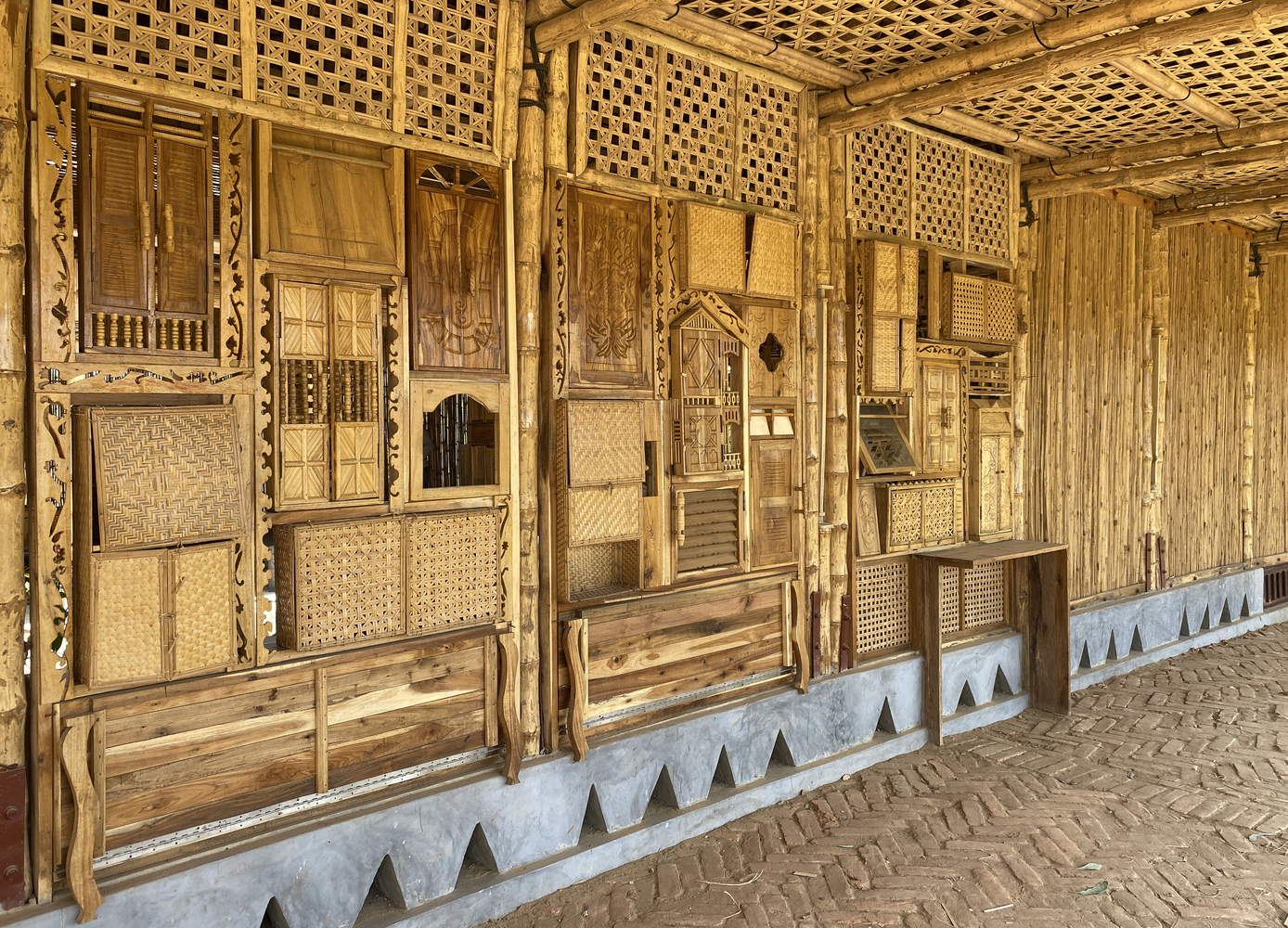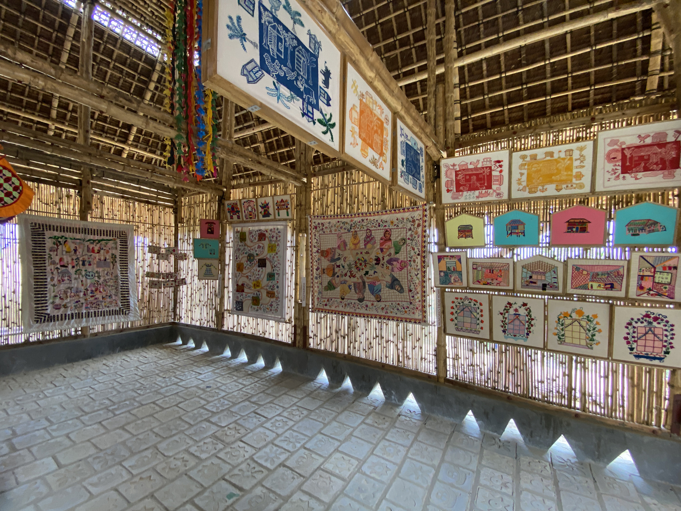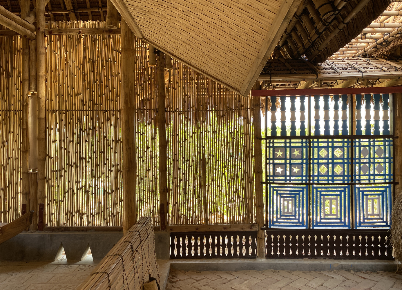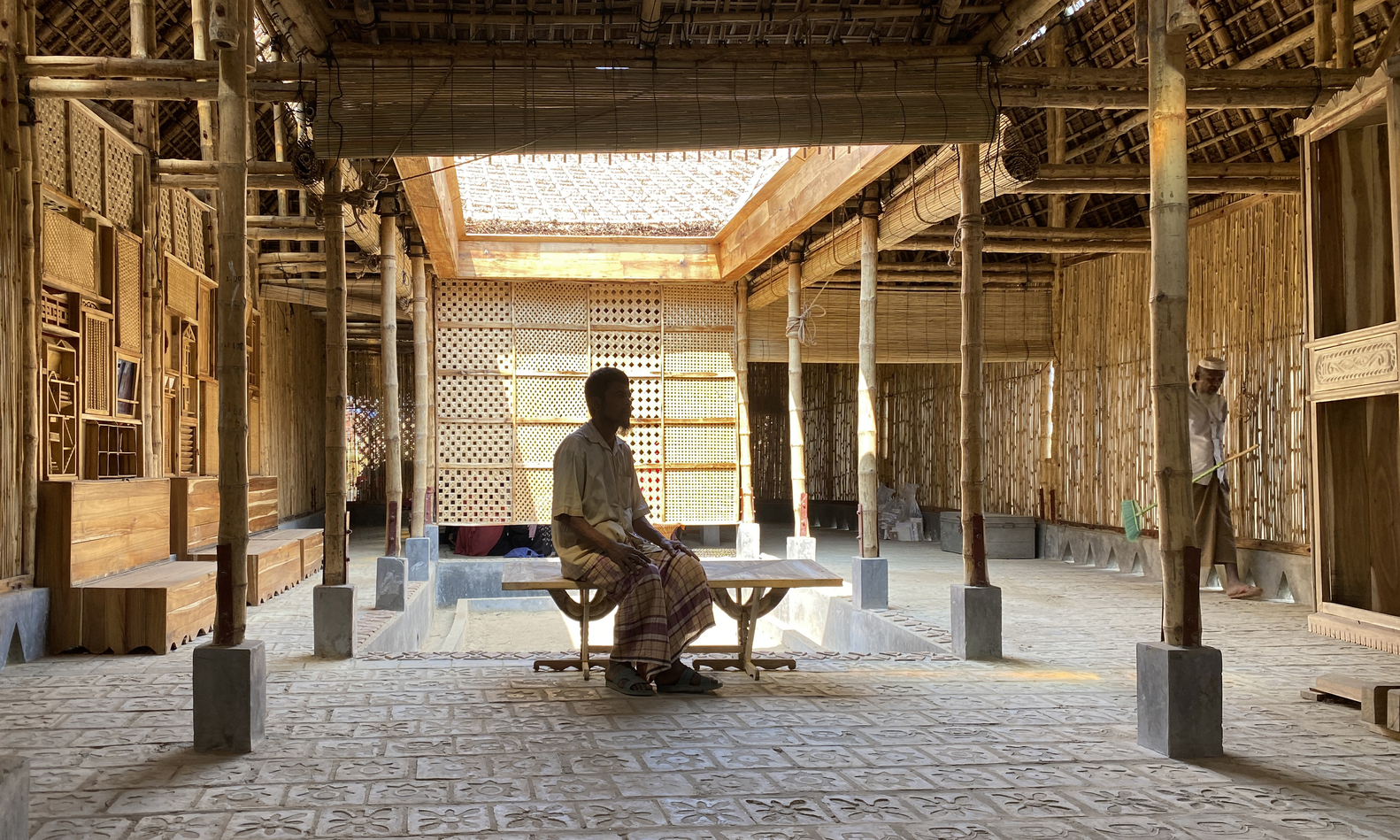 拥有多年专业知识的老年工匠向年轻一代传授他们曾经拥有的技术。而年轻的罗兴亚灵魂探索新的可能性。构成空间的元素是各种设计会议和实践研讨会的成果。例如,要求工匠通过设计一个小窗口来反思他们最喜欢的记忆/故事。自己的房屋、钓鱼、大象、鸟类、稻田和所有其他记忆都被反射出来,现在一起站在中心,反映了一种记忆和团结的感觉。