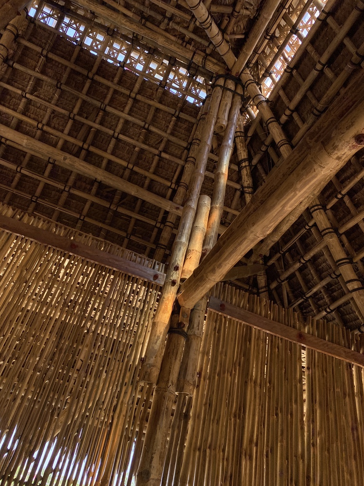 创造大厅的坚固竹屏风是穿孔的,具有空间的透气性。它还确保了安全性,但允许从外部进行可见连接。该中心的规划确保了大厅之间和大厅内有足够的穿孔,以便雨水被山土吸收。这将有助于地下水不断补给。