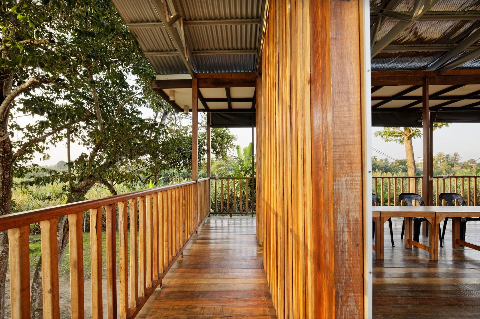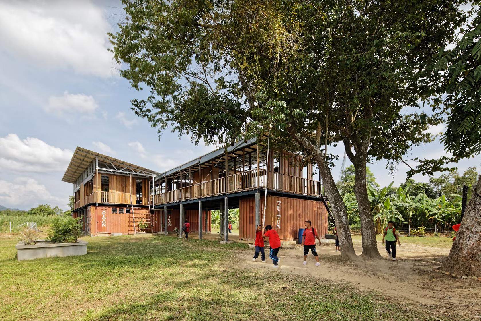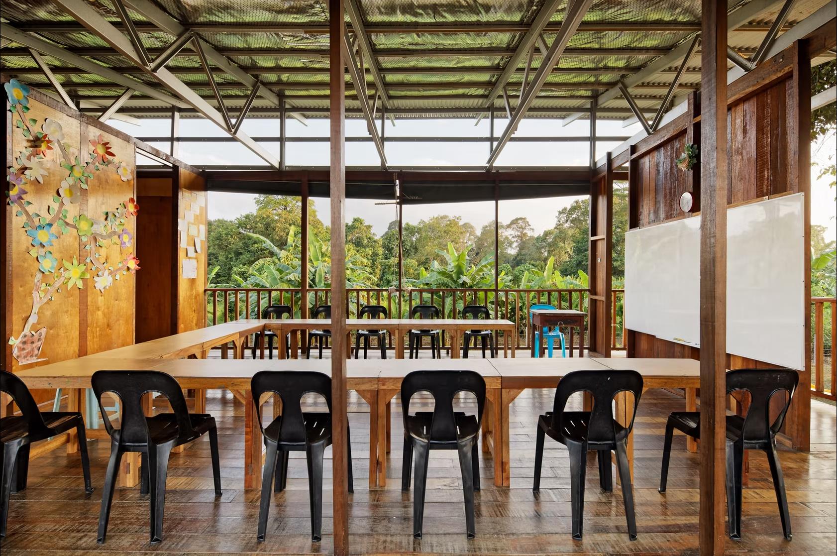 学校位于河流沿岸,每 10 年左右就发生一次大洪水。原始雨林的破坏和油棕种植园的替代进一步增加了洪水风险。因此,原型学校与婆罗洲的大部分乡土建筑没有什么不同,是从地面升起的。然而,这里的教室以一种非常规的方式被抬离地面。