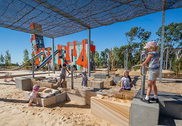 新游乐场由三部分组成,围绕新的大十字草坪布置。游戏分散在大十字草坪周围,以鼓励在更大范围内的运动,并在更喧闹的高能量活动和针对树屋周围年幼儿童的区域之间留出一定的距离。