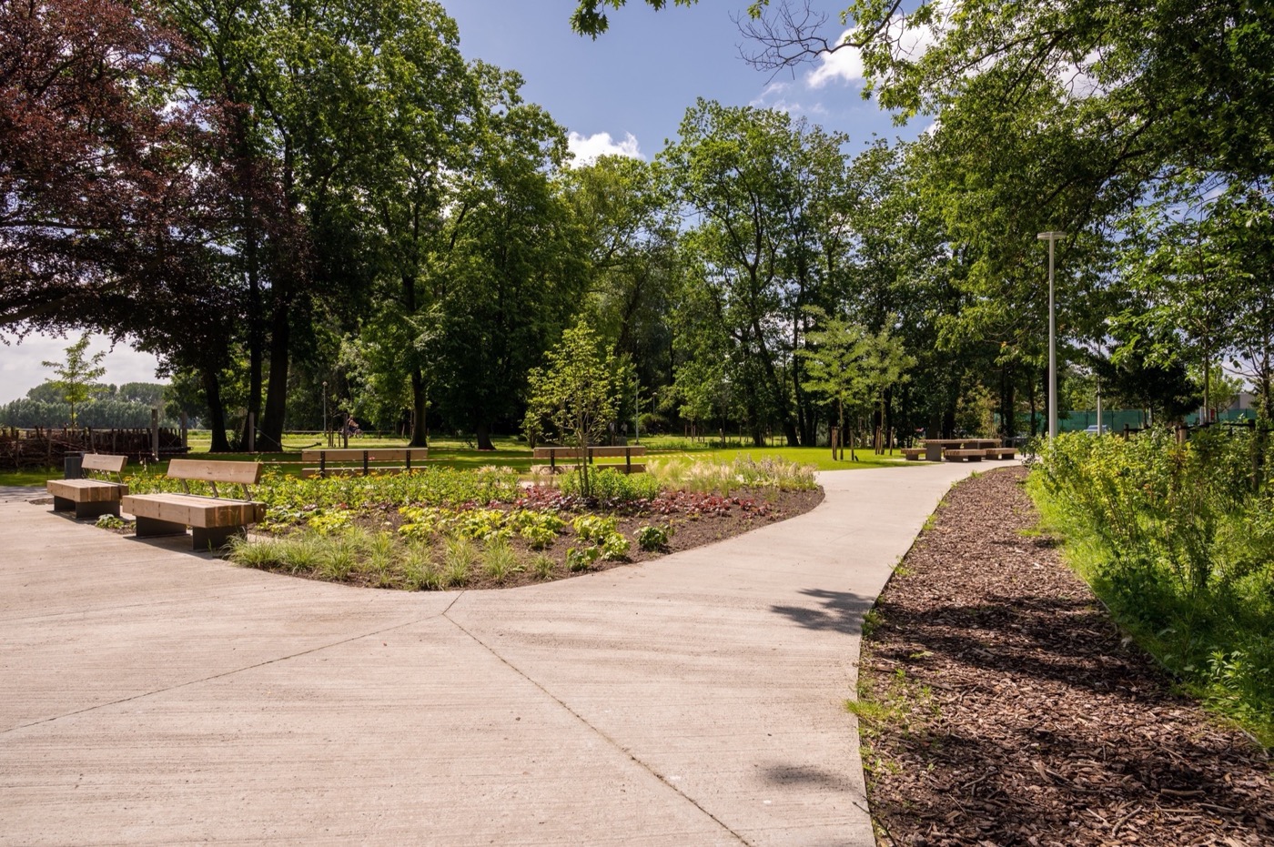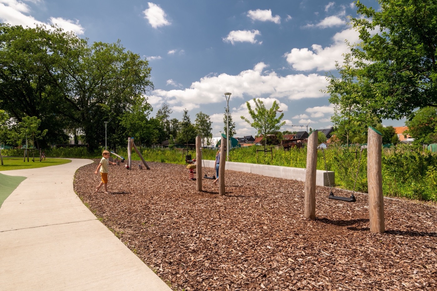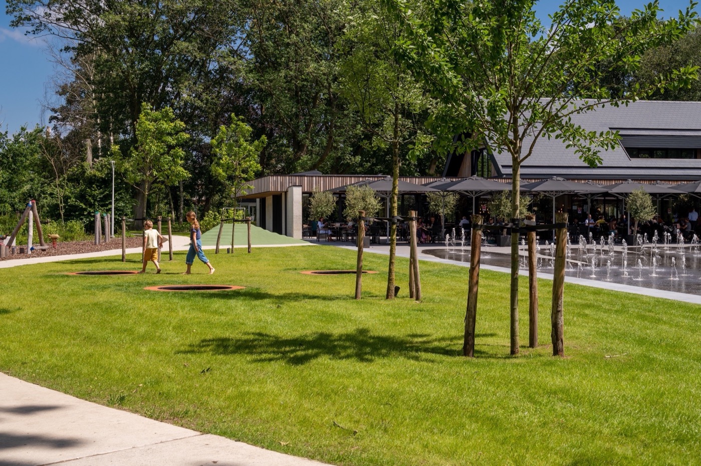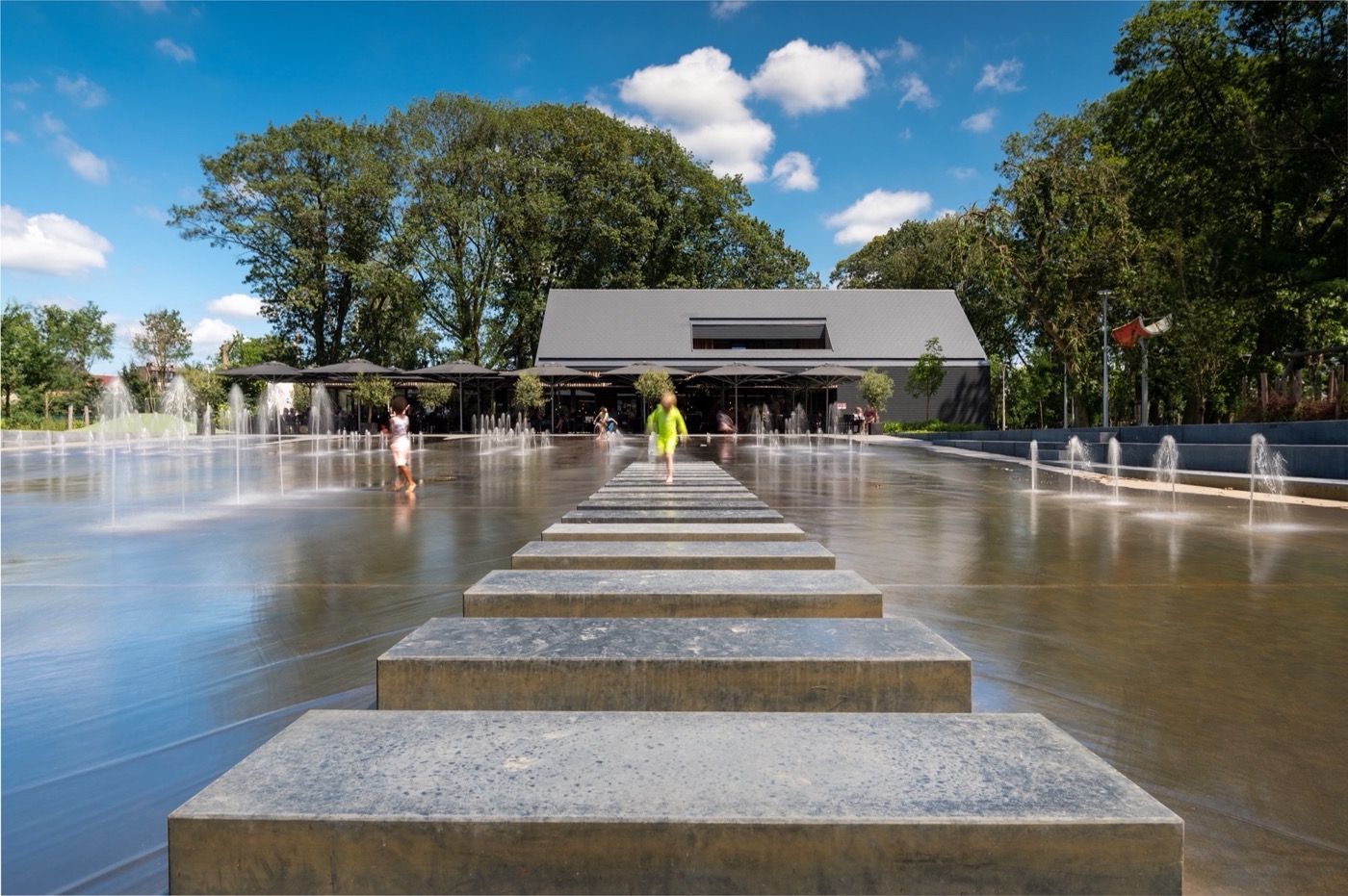 带有餐饮设施的新展馆、靠近露台的水元素、引人入胜的公园小径和各种游乐元素增加了公园的吸引力,并确保公园在 Stekene 的公共空间中发挥重要作用。