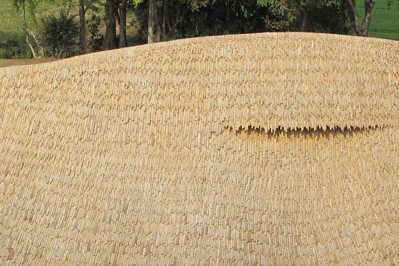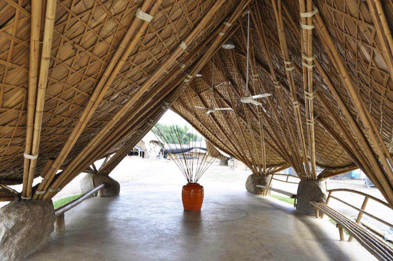 竹子作为屋盖,用于许多常见的公共建筑,如会议厅和餐厅。由竹子改成的柱子从石屋达到竹伞,给人的感觉就像是穿过一片雄伟的竹林。