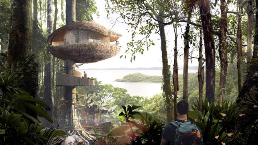 加勒比海的岛屿链以其风景秀丽的自然公园而闻名,这些公园由森林和红树林组成,为数十个物种提供栖息地。树屋的设计旨在利用田园诗般的环境,在其球茎形状的一侧通过宽阔的全景开口,将