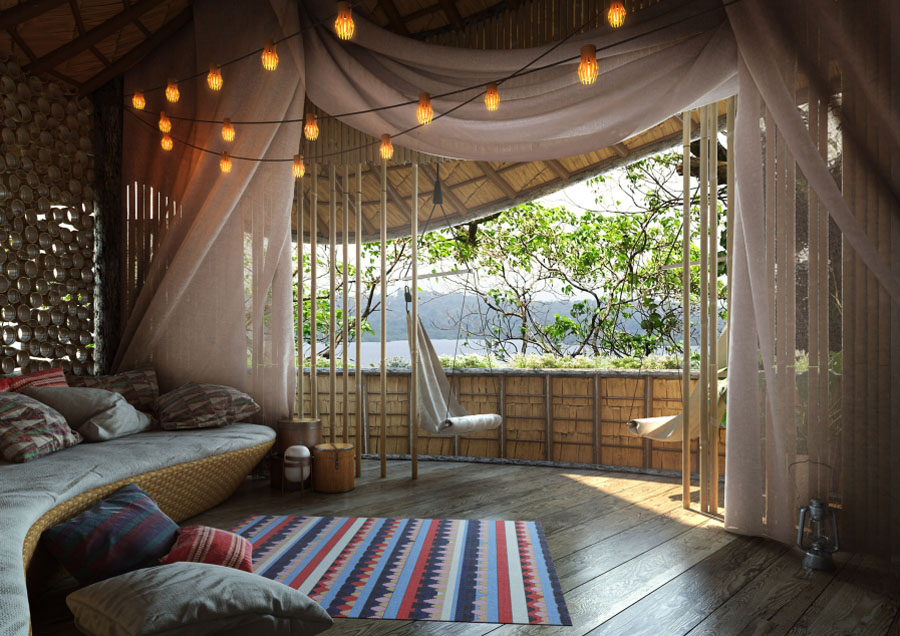 这个可可豆荚形的树屋,位于僻静的巴拿马岛上,只能乘船到达。