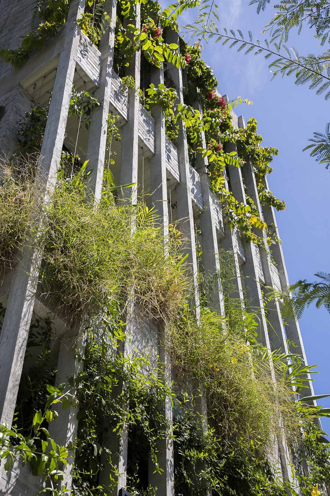 ▼百叶状混凝土立面设计为建筑遮挡自然光线