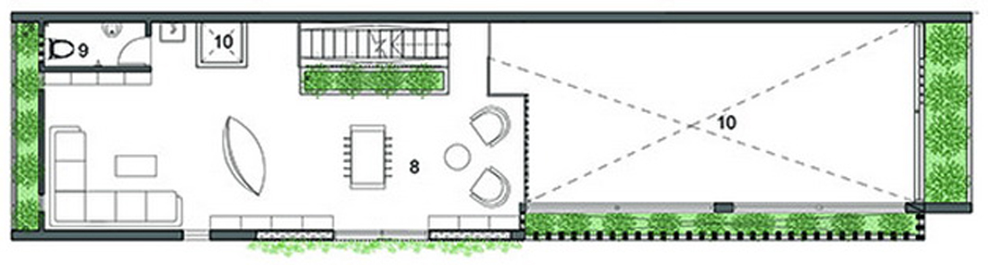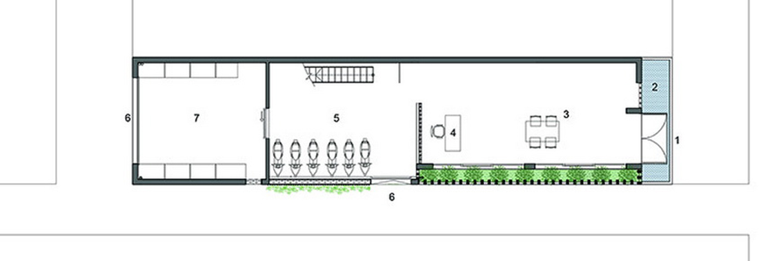 香蕉树,黄色灌木丛和本地生植物被移植在办公室首层。前门的水景与木板踏步相映成趣,四周环绕茂密的植物。建筑西南面的装饰混凝土设计如百叶,用以阻挡强烈的日光和迎接来自远洋的微风。