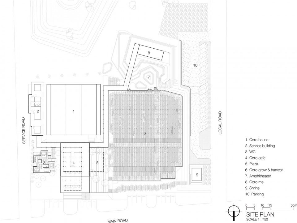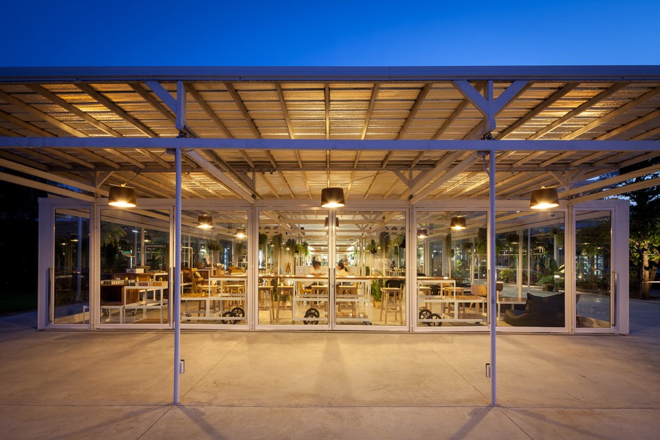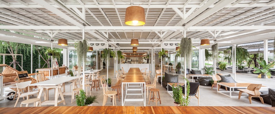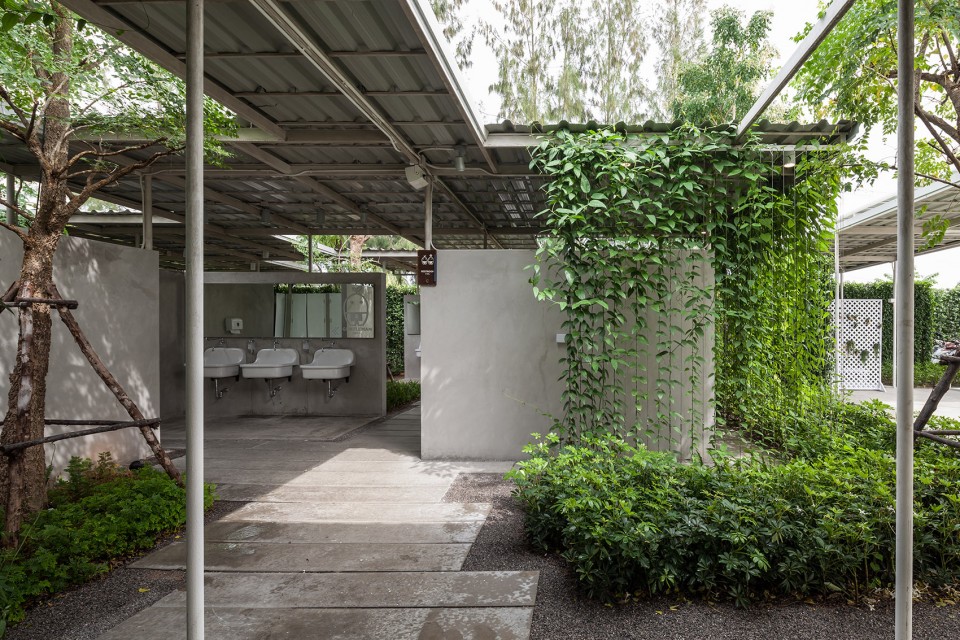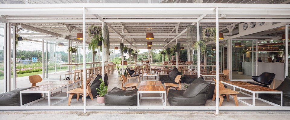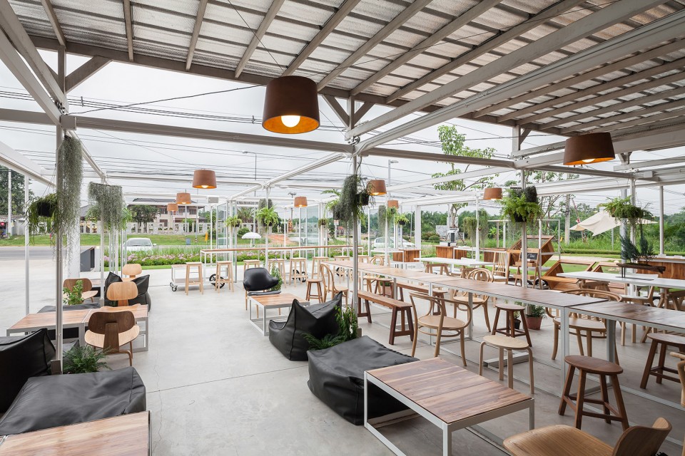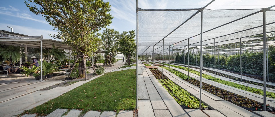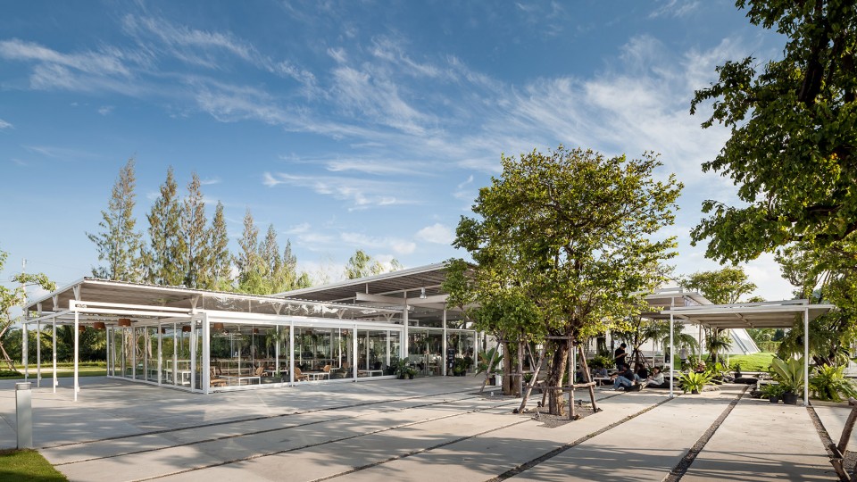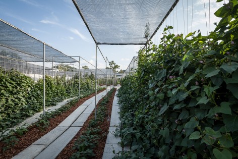 醉心于农业的业主Coro兄弟希望借由他们在风景如画的泰国小镇愿拼县(Suan Phueng)所拥有的一块田地,将种类繁多的农产品和平静的田园生活引入城市。项目的第一阶段工程顺理成章的占据了地块与城市接壤的边缘地带,蔬菜、瓜果,各式各样的农业作物在整洁有序的园区内舒展着枝叶,一派田园风光,而在相邻的建筑内,则展示着来自土地,自产自销的农产品。按照整体规划策略,项目的后期阶段也将在短期内相继实施,以增强园区对多样化活动、产品生产和实验的支持度。