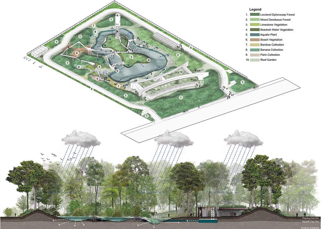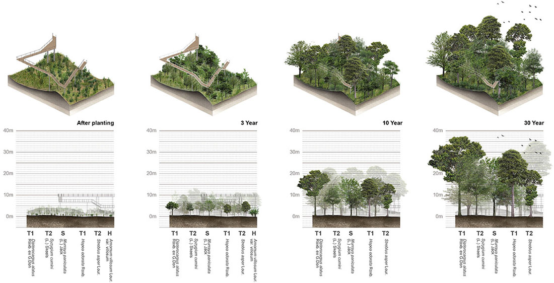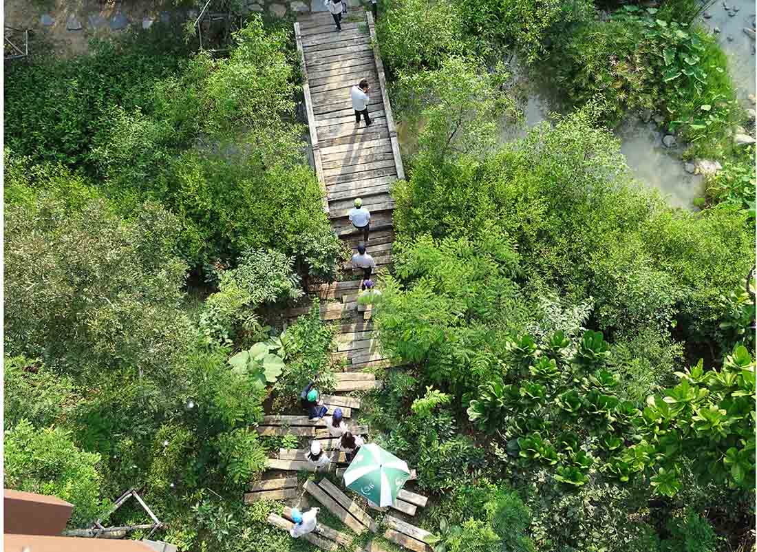 Metro Forest,隐匿于市的森林氧吧,位于曼谷东部边缘的Prawet郊区,它是一个生态再生工程,被设计为一个户外展览空间,以培养环保意识,并教育游客了解当地森林系统。该项目把占地2公顷(4.75英亩)的废弃的土地恢复原貌,扭转郊区蔓延,城市热岛和洪水易发展的趋势。它不仅是一个由人雕刻的静态花园,更是一个由生态系统过程形成的动态过程。