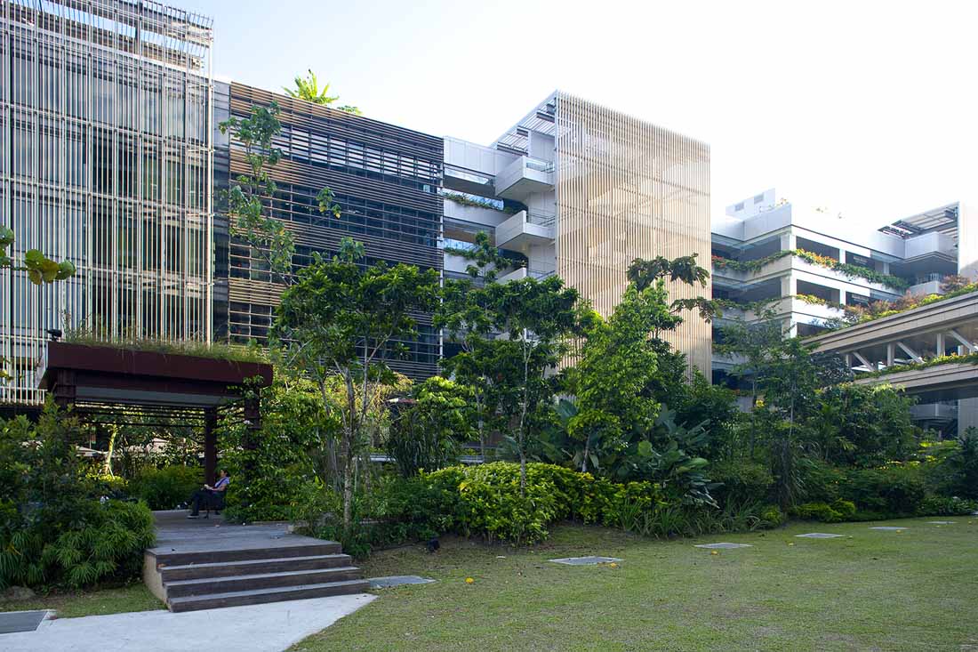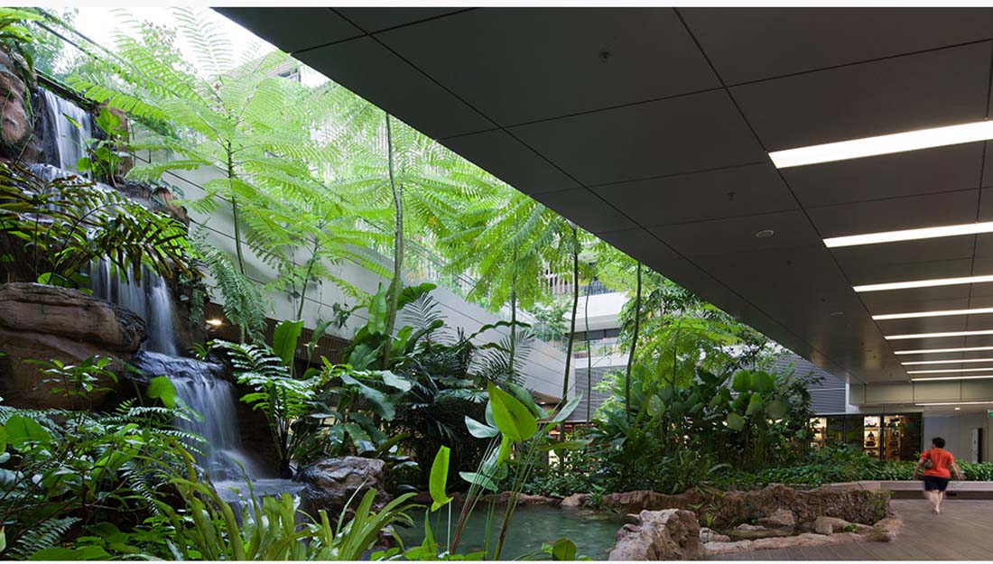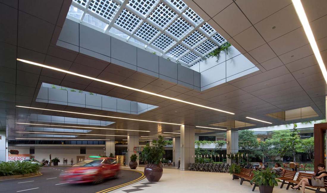 新加坡的Khoo Teck Puat医院是一家拥有自然治愈之力的医院。医院的设计使得“当人们进入医院时血压会降低。”医院通过与自然无缝融合来实现:通过将患者浸入自然愈合环境中,帮助患者忘记疼痛并提高康复率;为公众创造一个充满活力的公园般的氛围;扩大视野和自然环境,为员工创造有利的工作环境。