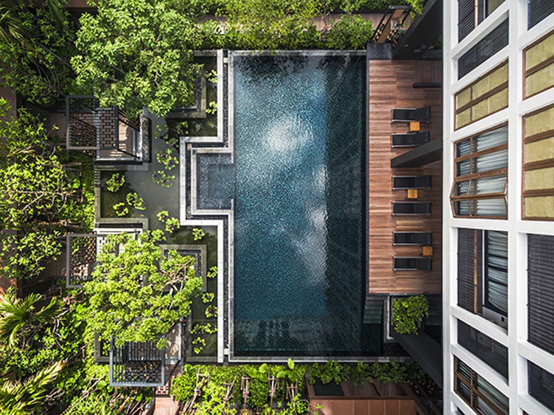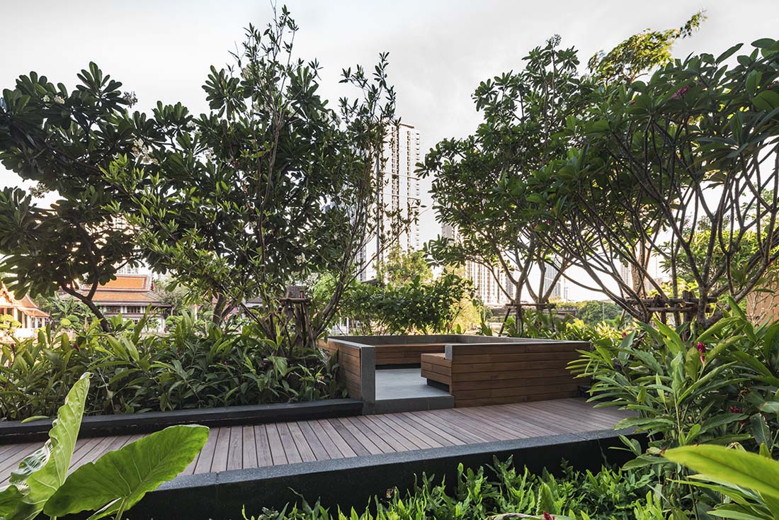 编后语:为了更好地设计新的住宅建筑,设计师也把现存的周边环境视作一个完善的邻里单元,把运河边带后花园的传统泰式住宅作为灵感,将这种怀旧的特征赋予庭院和居住空间。在生态建筑的设计与景观设计方面,游泳池与水莲池无缝连接,水流从泳池边缘溢出流到水莲池边,身心与自然融为一体。周边的环境也是经过精心的考虑的,无论是闲暇时候在木栈道散步,还是约上三五知己在凉亭闲聊,这样的设计为聚会提供了一个美妙的环境。