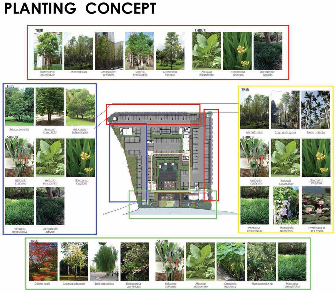 “睡莲池”被设计为景观空间的标志,以创造周边地区的反射效果。池边的水溢出池边,创造出宁静的水声效果。 特色树(印度橡树)位于这个池内,以提供良好的视觉焦点。