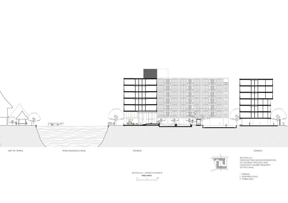 Hasu Haus公寓是位于Pra Kra Nong运河沿岸的宁静社区中的公寓的一个开发项目。在周边环境的映衬下,Hasu Haus的景观项目旨在反映“与水共处”和“慢生活”的理念。