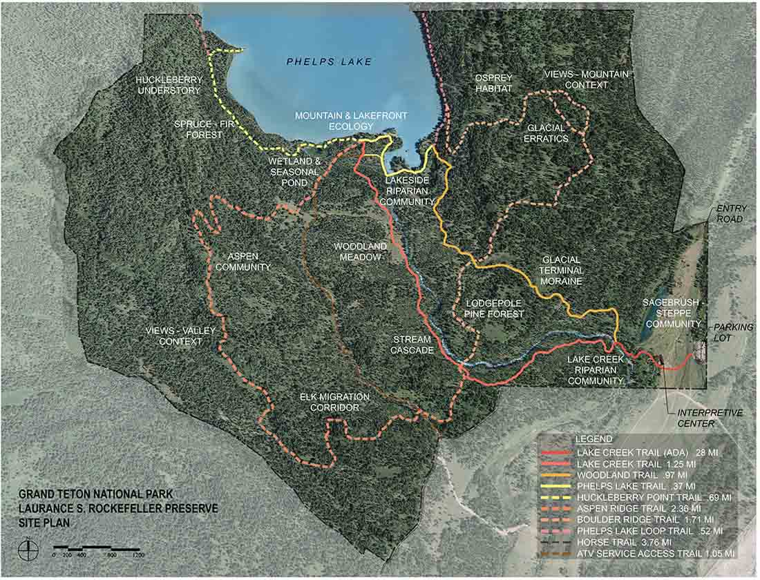 劳伦斯·S·洛克菲勒提出了一个颇有远见的项目,旨在通过沉浸于自然景观之中,以一种强调环境保护的方式平衡土地保护以及公众访问。精心设计的入口,路径网络以及适当的解说中心使得访客得以通过轻微的接触,选取的路径,以及变革的特性,参与漫步于国家公园布景之中的体验独特的经历。该项目被送给美国公众,成为了所有国家公园中第一个获得LEED铂金奖的项目。