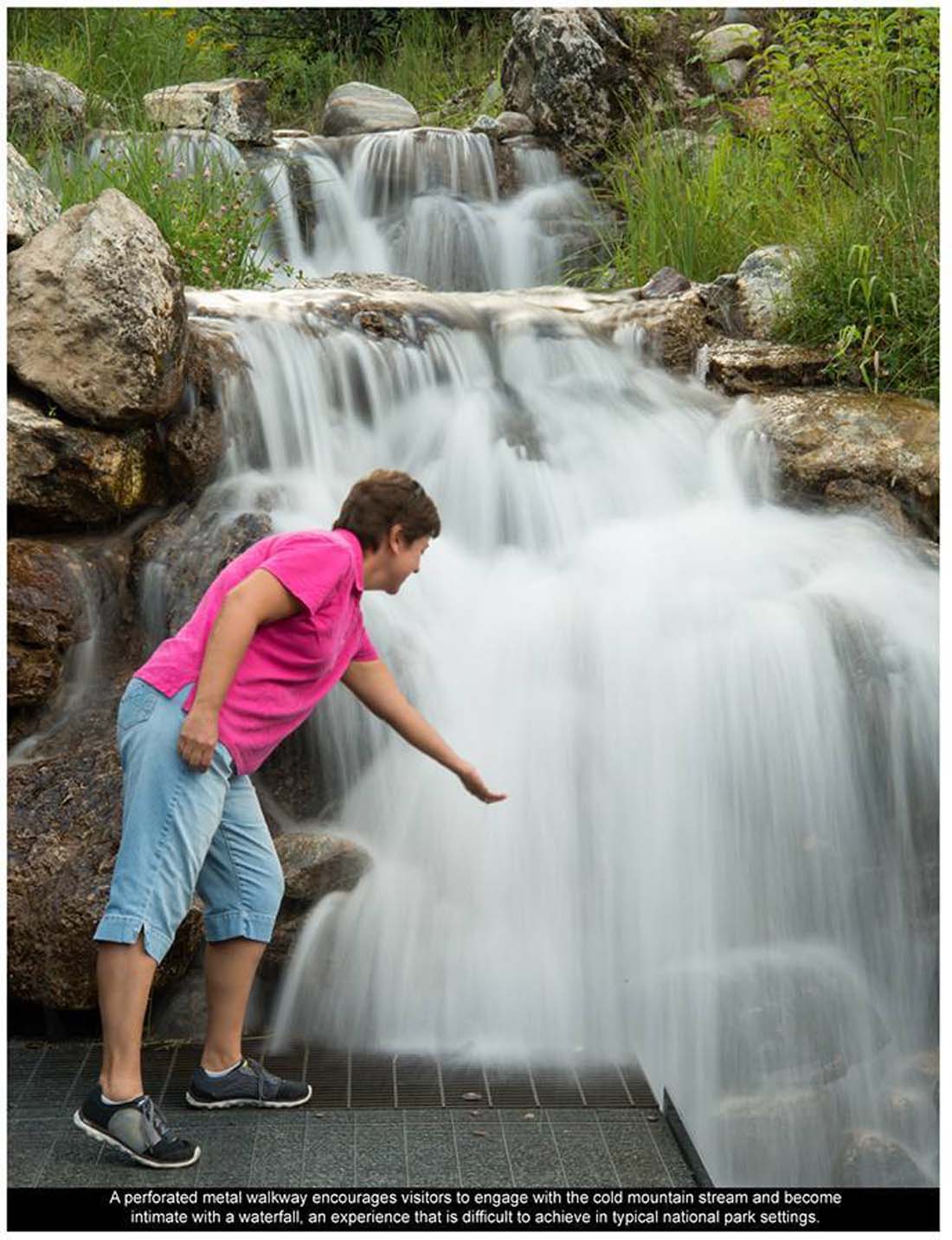 ▽ 穿孔的金属走道鼓励访客体验清凉的山间溪流,并且与瀑布亲近,这在普通的国家公园环境之中是难以经历的体验