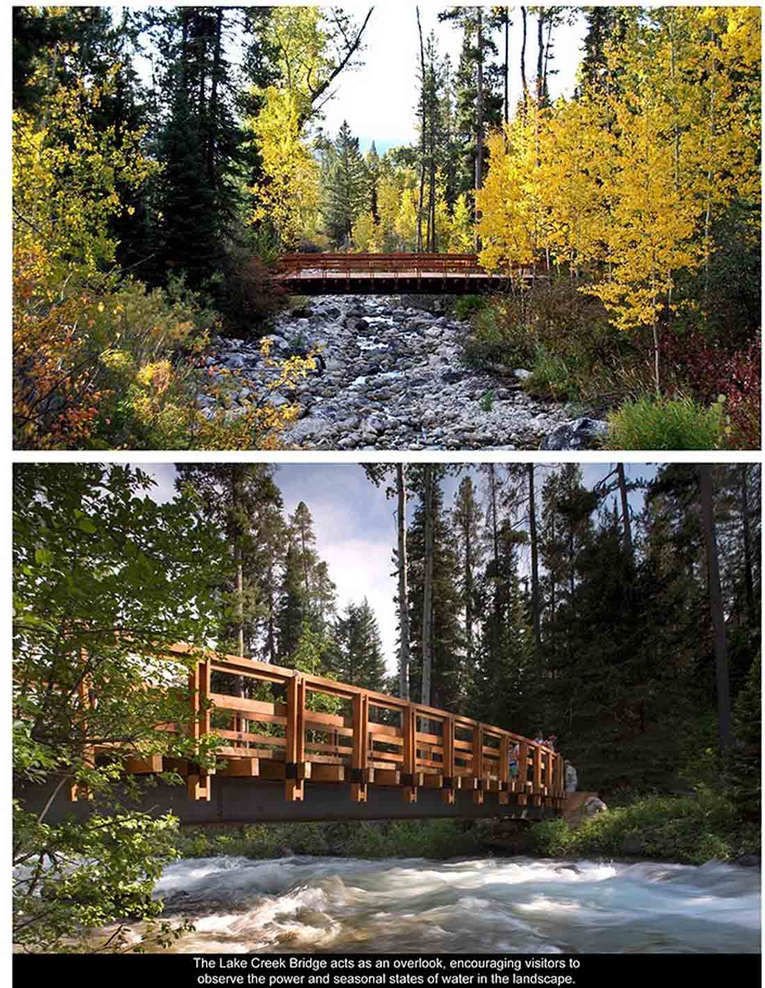 ▽ 溪上小桥可作为俯瞰眺望之地,鼓励访客观察景致之中水的力量以及其在不同季节时的形态