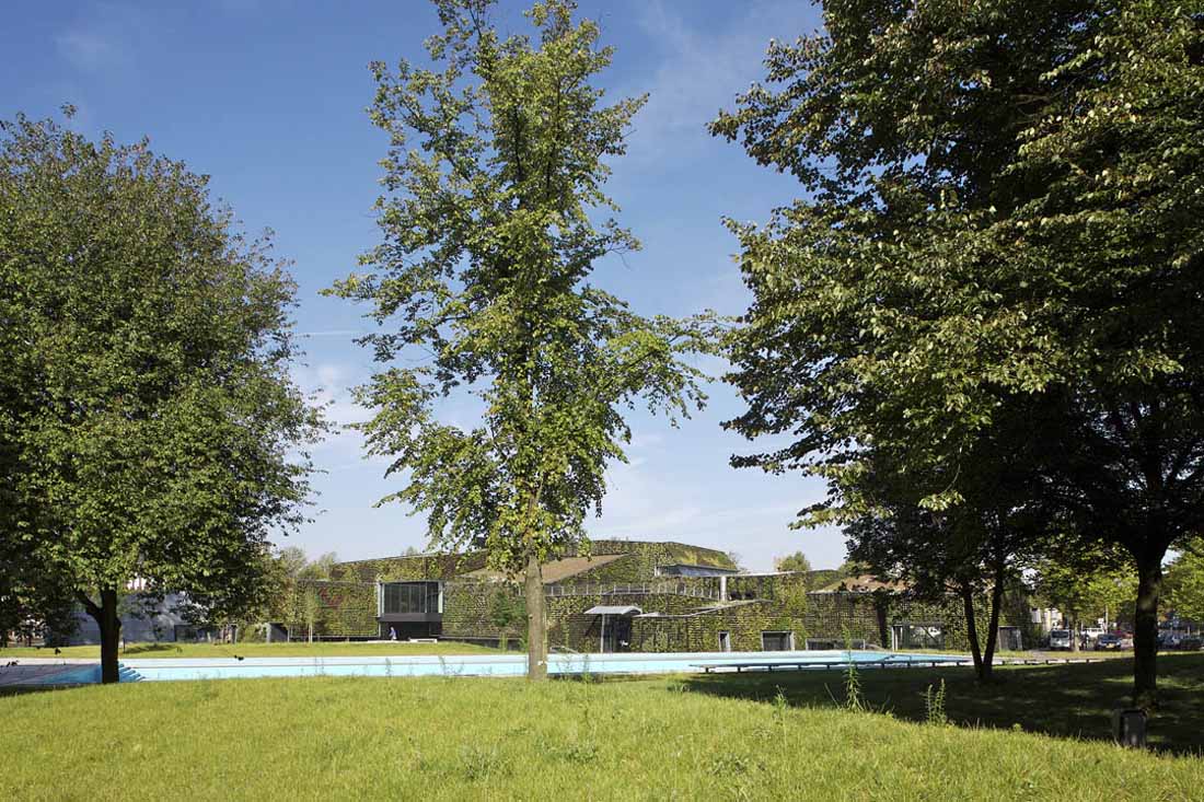 位于阿姆斯特丹的De Baarsjes社区聚集了来自世界众多不同国家和地区的人民,是名符其实的社会大熔炉。为了提高社区居民的生活质量,政府希望为这里建设一个多功能综合建筑。考虑到场地的公园背景,建筑师为建筑铺设了厚厚的绿植外皮,使它看起来像座藤草肆意蔓延覆盖的古老城堡,点缀其间的明亮的玻璃幕墙不时带来惊喜。众多窗口开拓了视野,屋顶天窗将光线引入建筑内部。低处的窗户框住街道和阳光露台的景致。