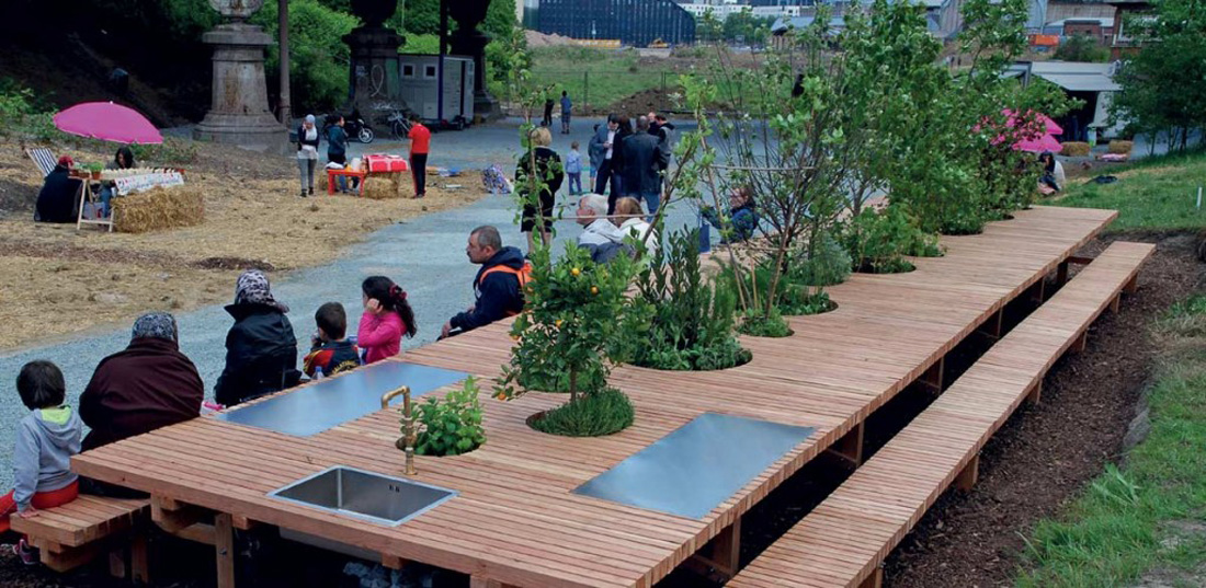 该装置邀请公众与景观直接接触和吃饭。该项目的实质是通过共享时刻让参观者参与景观,农业,自然和烹饪。