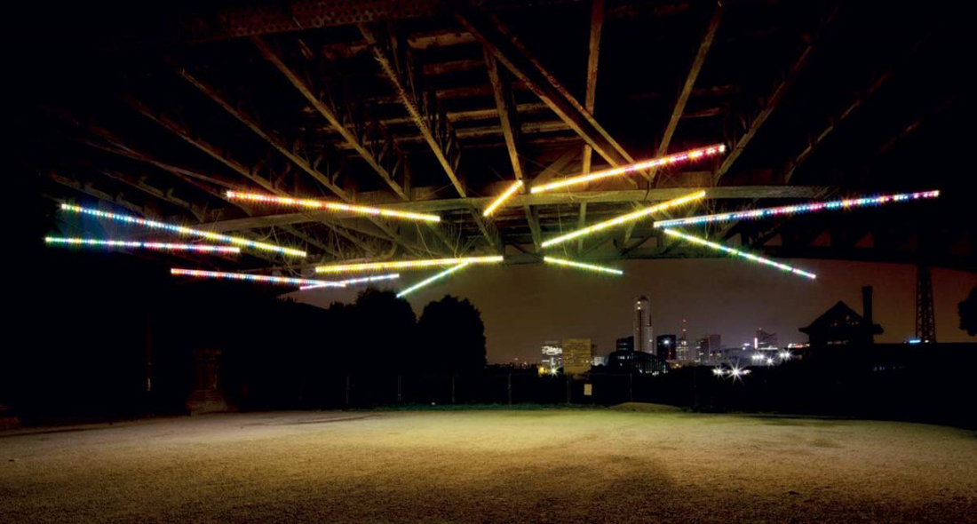 该装置从农业博览会典型的氛围中汲取灵感。艺术家将其称为电彩虹的装置,试图在人与人之间建立新的联系。