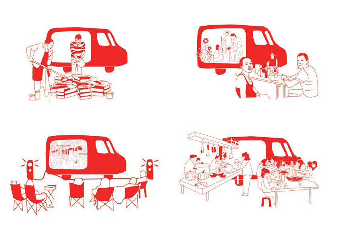 该项目代表了Parckfarm的移动部分。这辆面包车可以变成厨房,工作室,电影院和舞台等等。作为与布鲁塞尔公民交流和分享节日产生的工具。它同样旨在承认,贡献和传播农场区域丰富的农场知识。