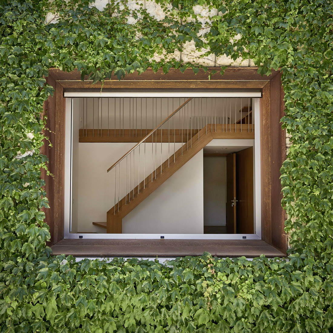 清理房屋及其周围的花园需要4个月的紧张工作。这个废墟的新“居民”是一系列斯巴达穿孔的钢包盒。彼此堆叠在一起,它们偎依在房子的其余两个部分的怀抱中,延伸在屋顶线上。