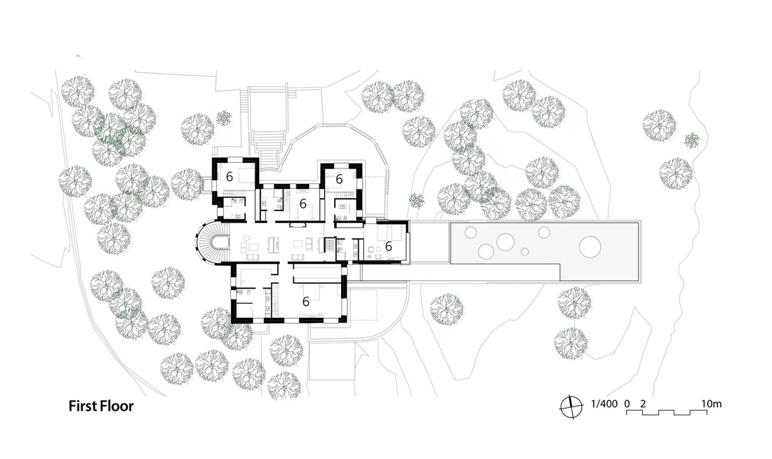 这所房子坐落在一个美丽的地方,周围环绕着黎巴嫩山区Bois de Boulogne的松树林,并提供各种各样的复杂功能。首先,它已经有了房子的遗骸,这座房子是1930年代度假村内建造的第一座现代住宅之一,最初属于现任业主的祖父。黎巴嫩战争一开始 ——这个小镇变成了一个重要的前线。房子受到枪击和炮击的破坏,被各种军队和民兵部队占领,并被用作酷刑和拘留中心28年。我们面对的改造的是一座有着辉煌历史的房子。