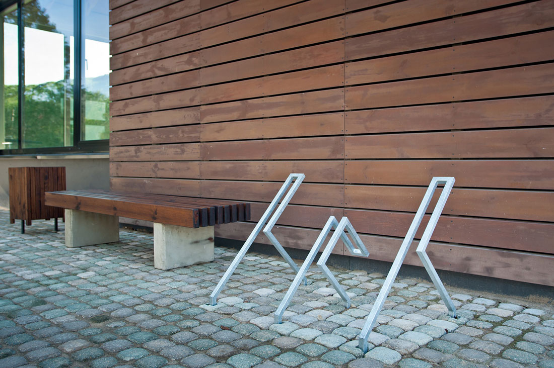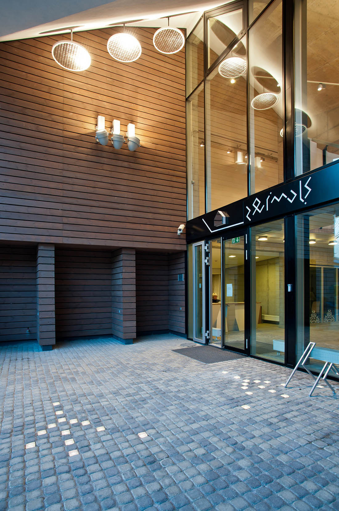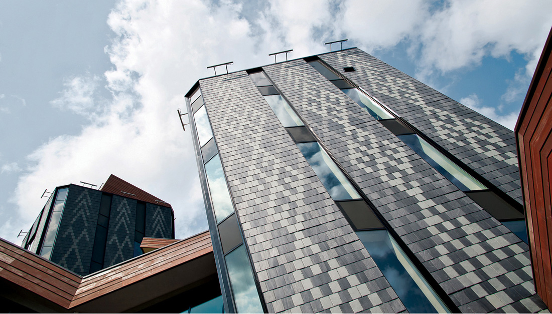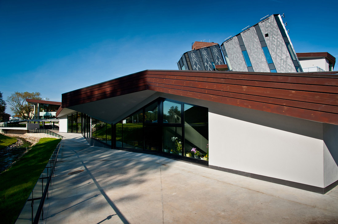卡在绿色建筑中的“铅笔”是现有苏维埃时期建筑的前身。建筑深入地下,五个立面,几何三角形的绿色屋顶,成为结构的主要特征。