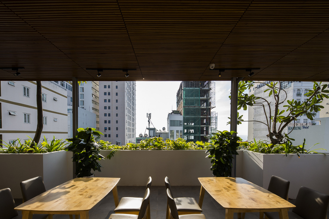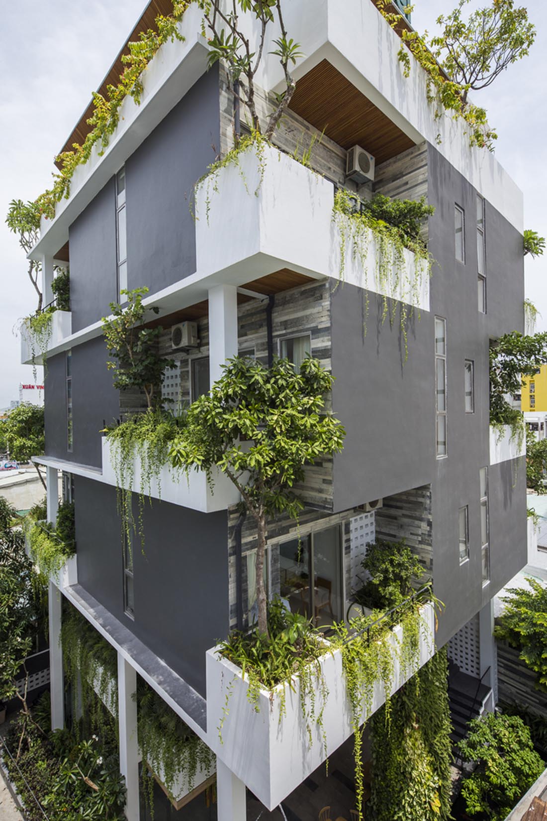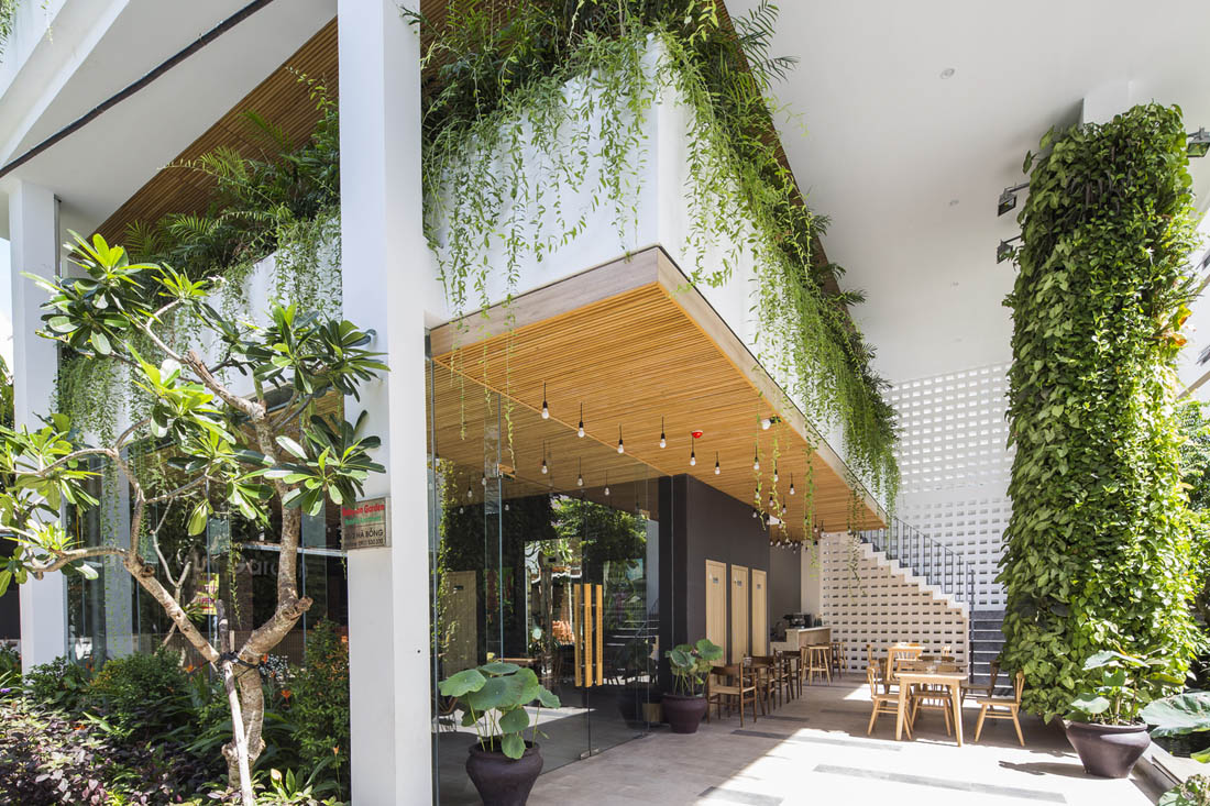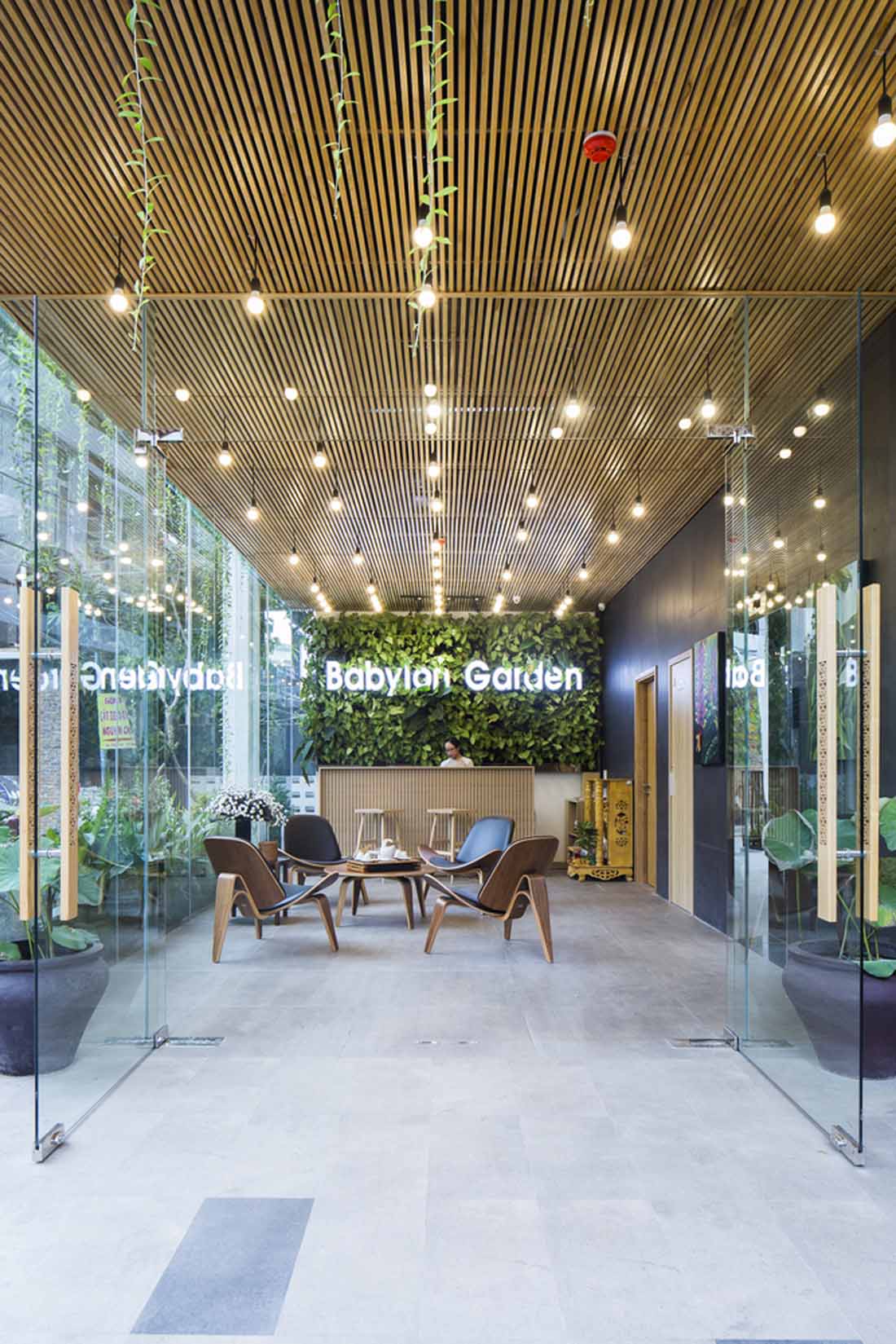 巴比伦花园位于Ha Bong胡同附近,最初的位置是不利的,因为这片土地被三面环绕着旧的住宅低层建筑。设计师的解决方案是建造高层,用反光玻璃,阳台和植物进行组合。这是一个绿洲,被绿色植物围绕着,让客人可以体验清新的空气,在炎热的夏季,回到这家自然的酒店,也可以怡然自得。