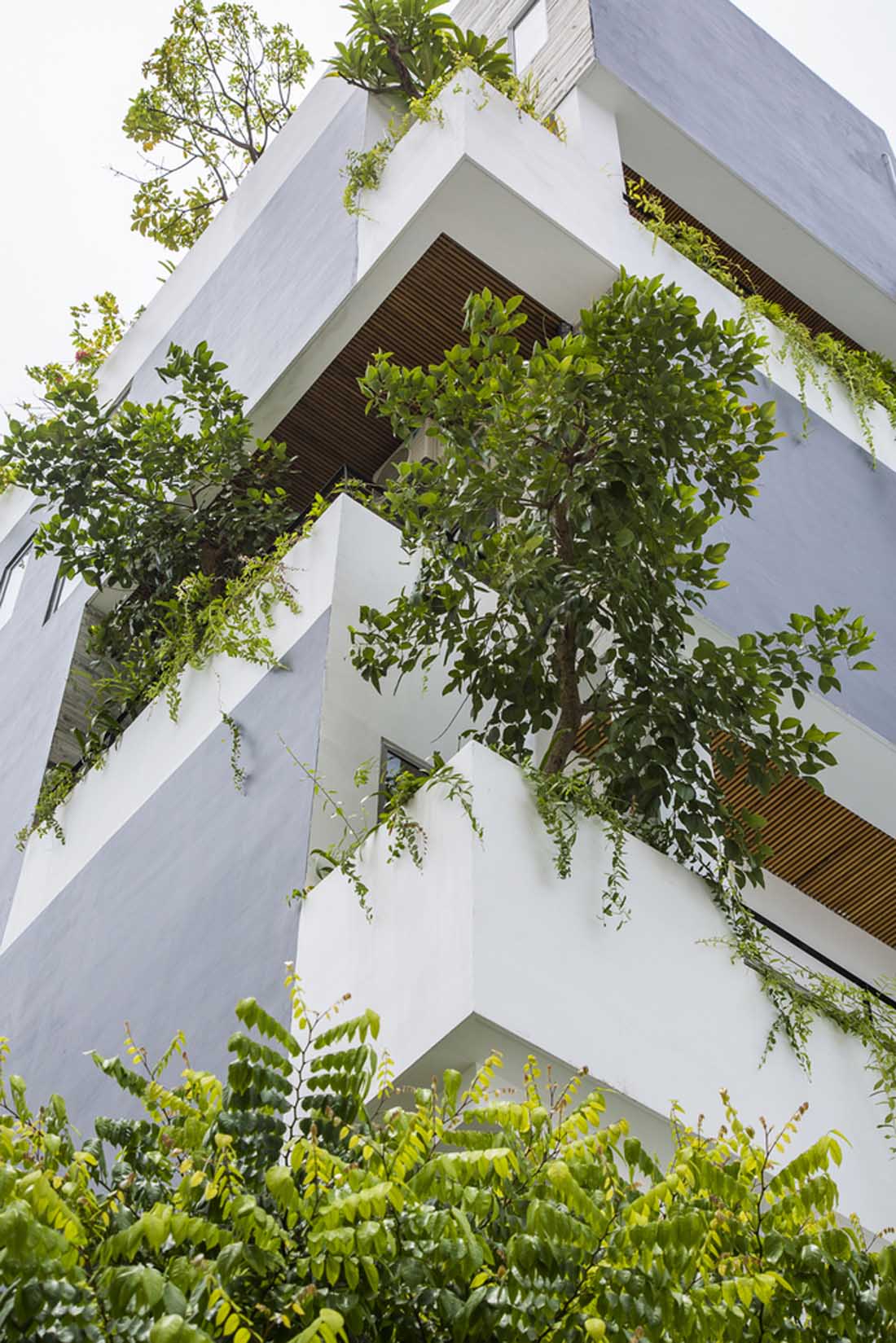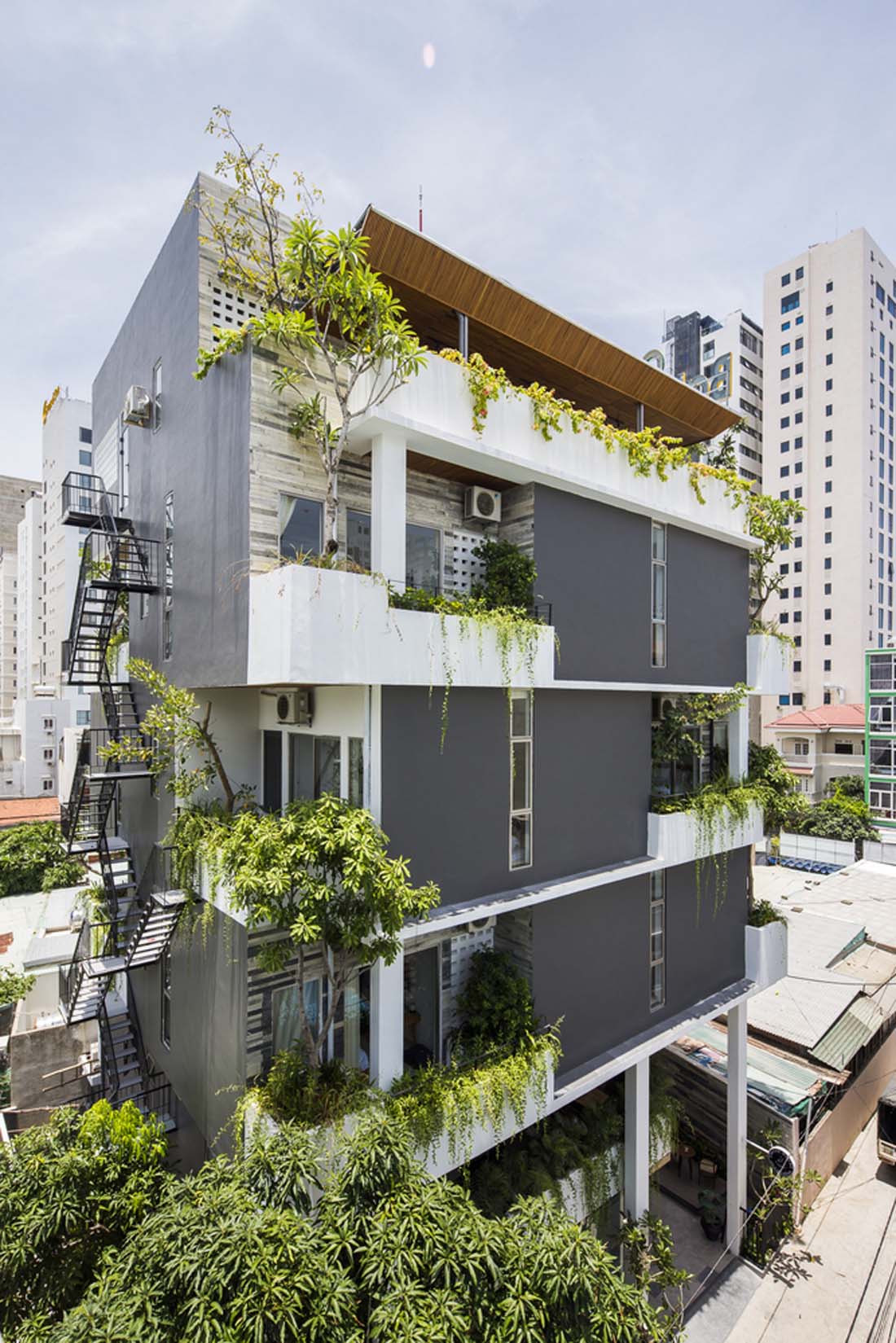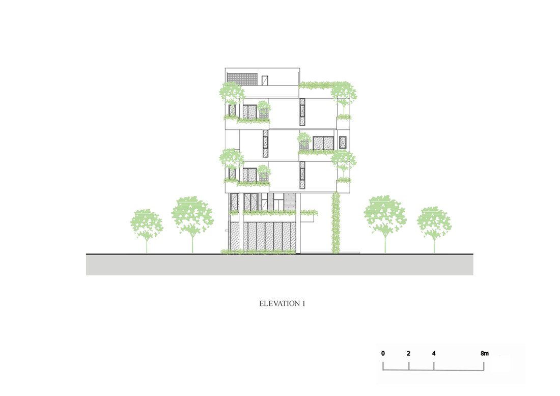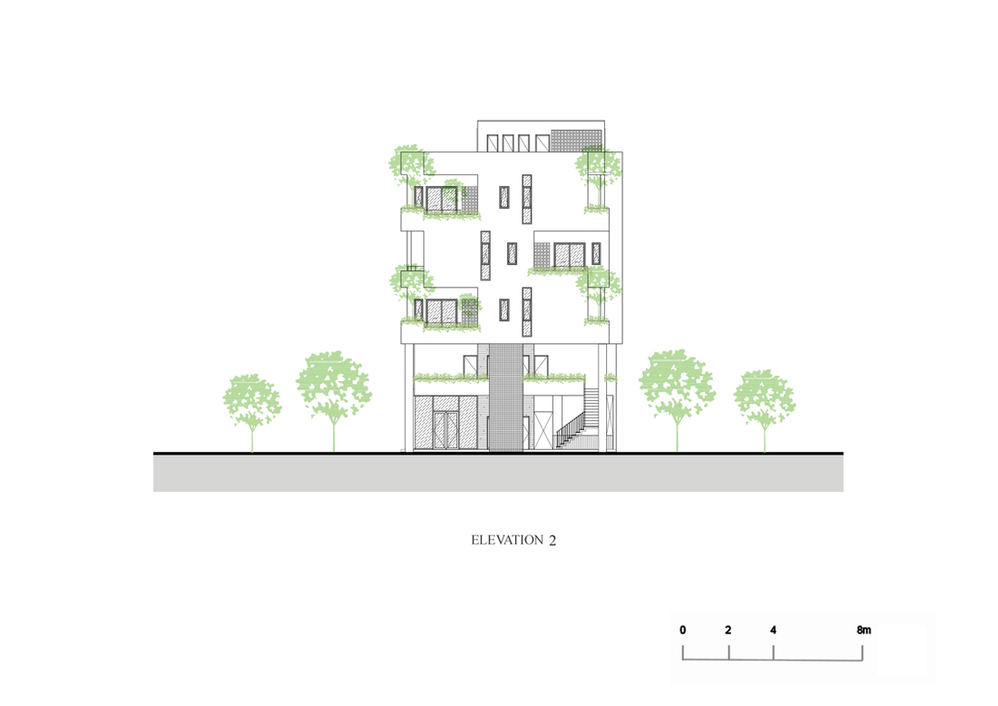 巴比伦花园位于Ha Bong胡同附近,最初的位置是不利的,因为这片土地被三面环绕着旧的住宅低层建筑。设计师的解决方案是建造高层,用反光玻璃,阳台和植物进行组合。这是一个绿洲,被绿色植物围绕着,让客人可以体验清新的空气,在炎热的夏季,回到这家自然的酒店,也可以怡然自得。