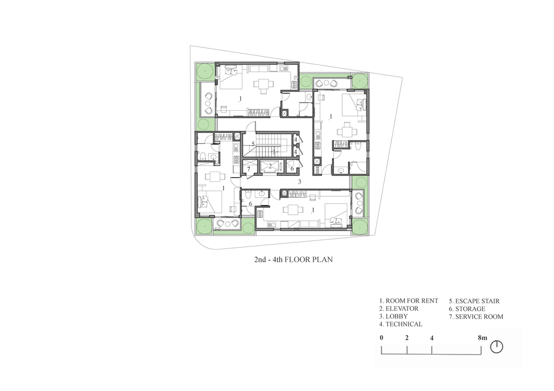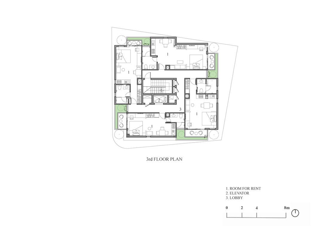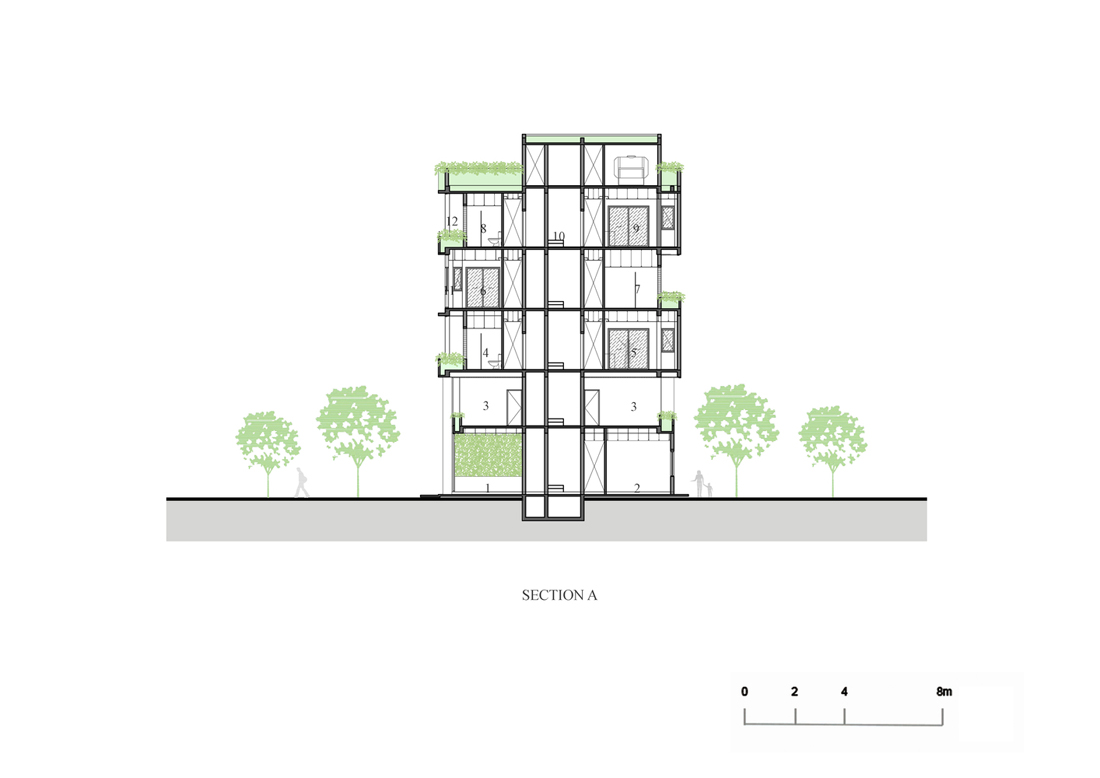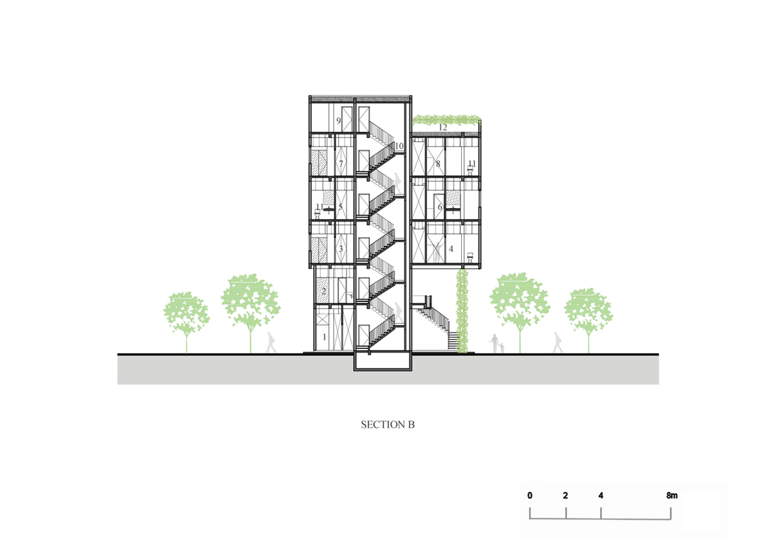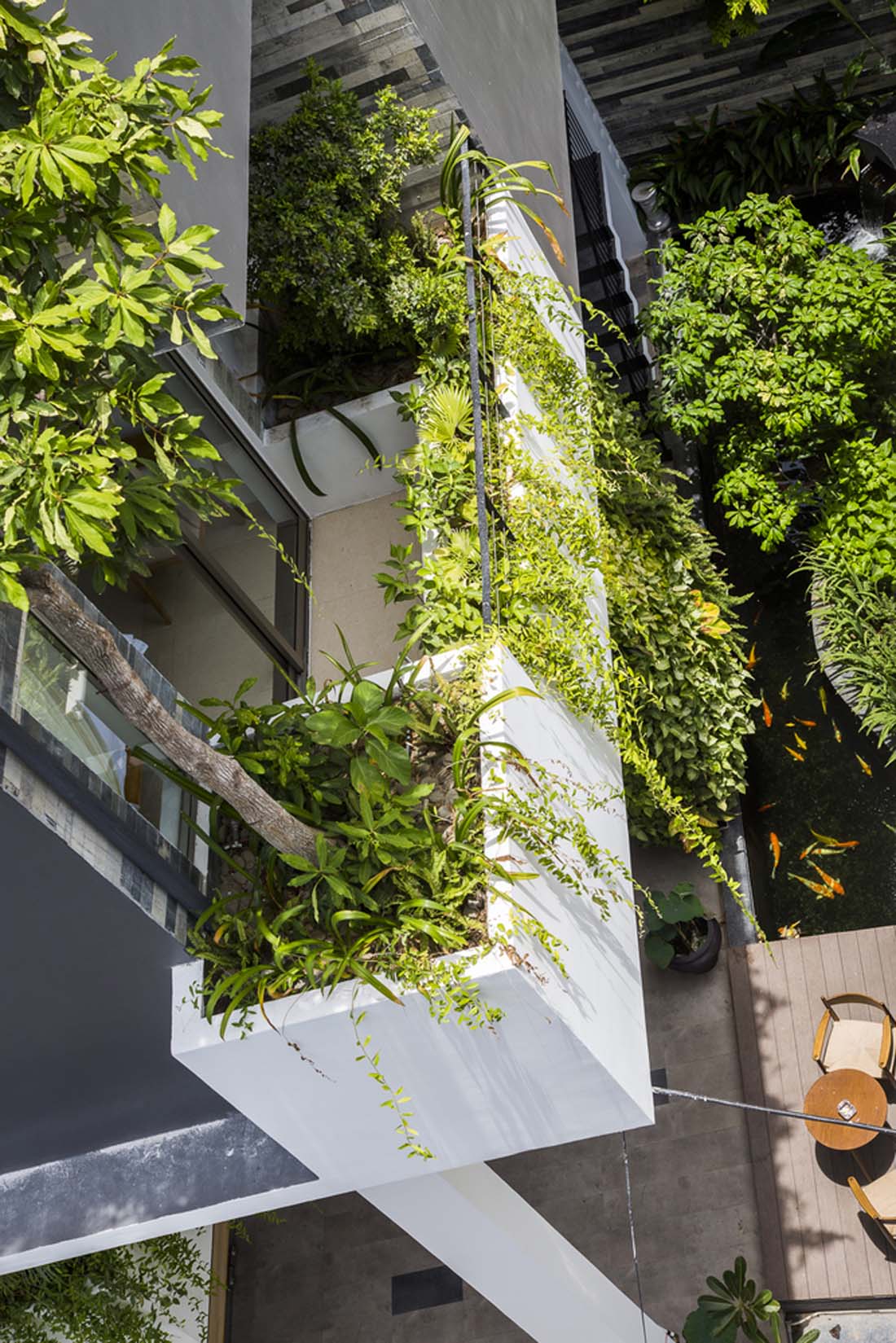巴比伦花园位于Ha Bong胡同附近,最初的位置是不利的,因为这片土地被三面环绕着旧的住宅低层建筑。设计师的解决方案是建造高层,用反光玻璃,阳台和植物进行组合。这是一个绿洲,被绿色植物围绕着,让客人可以体验清新的空气,在炎热的夏季,回到这家自然的酒店,也可以怡然自得。