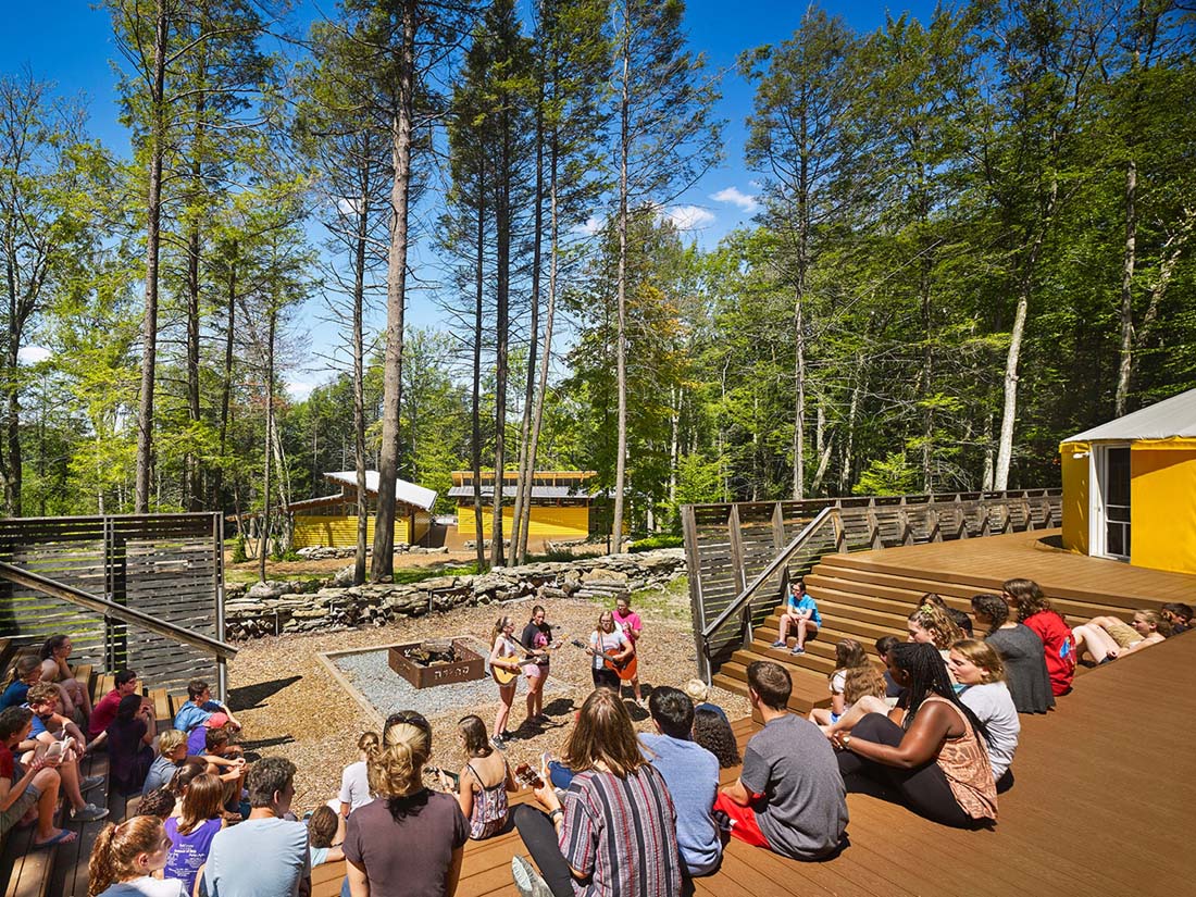 JRF营地位于Pocono山脉,距离现有的犹太重建夏令营仅有一座山丘。新营地将用于年龄较大的青少年男孩和男性露营者,由蒙古包小屋和彩色檐篷遮蔽。蒙古包将坐落在平台上,毗邻一个聚会场所,浴室和一个用于观星的土堤。