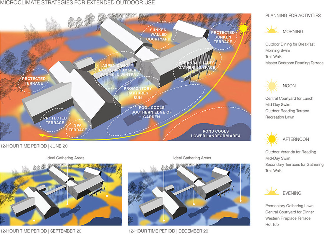 设计师通过太阳能分析,模型模拟和可视化表达得出了解决该问题的设计决策,成功创造了适用于户外活动的环境。