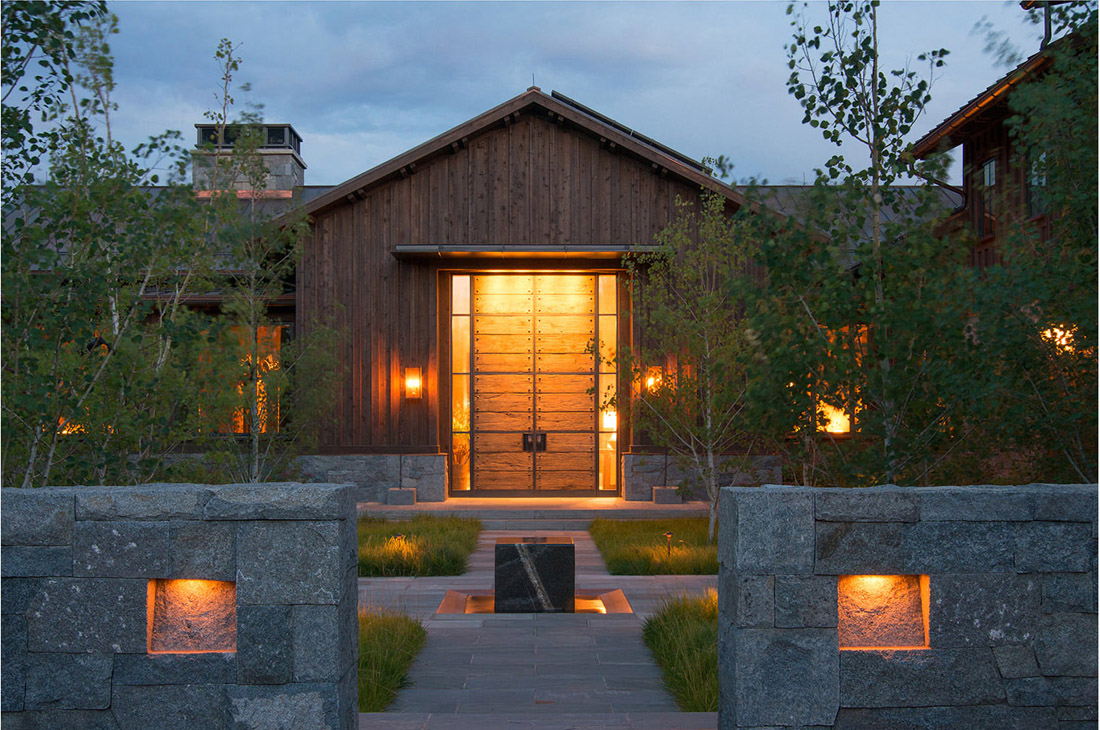 精心设计的到达空间序列让田园风光自然地延续到家庭院落之中。以回收沥青铺设而成的入口车道随着重塑的地形缓缓爬升,穿过点缀着美国黄松的修复草甸,来到以矮墙围合的院落之中。水、石、植被等景观元素的选择精致而又极富本土气息,演绎出传统农业建筑空间格局的新样貌,景观与建筑的无缝衔接让甫入庭院的人们便能感受到空间简洁却有极具活力的美。
