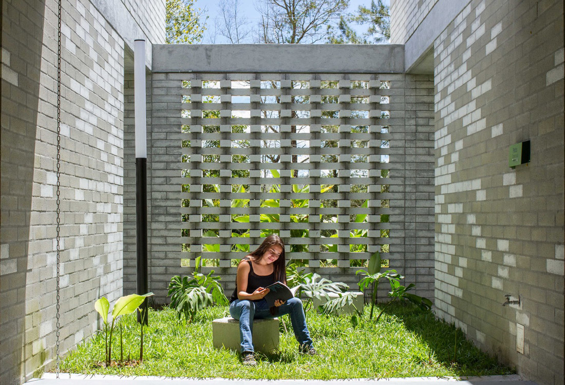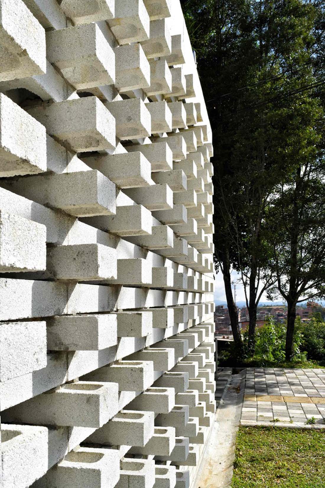 通过在各种混凝土墙中运用混凝土砖,建构的清晰性和简洁性体现了模块化和实用的系统,其不会因为在自由区域提高施工质量,减少施工时间和工程预算而失去多样性。
