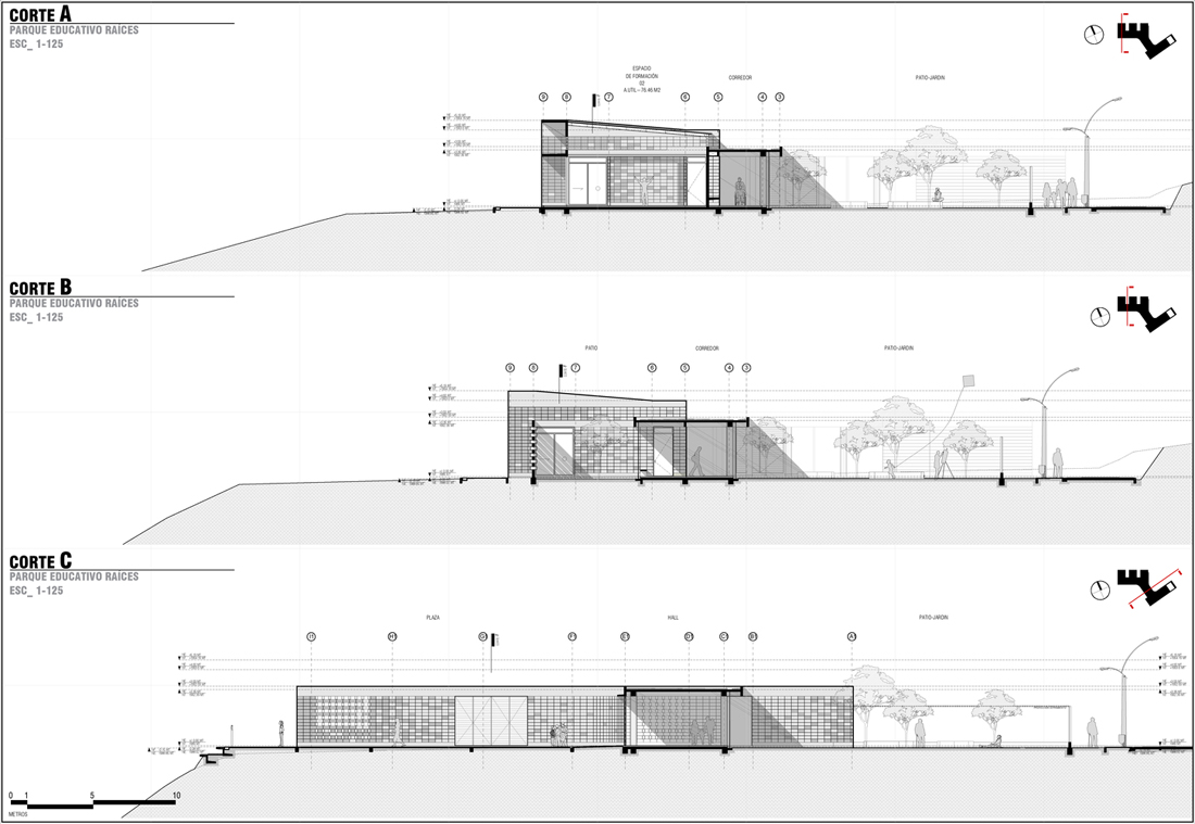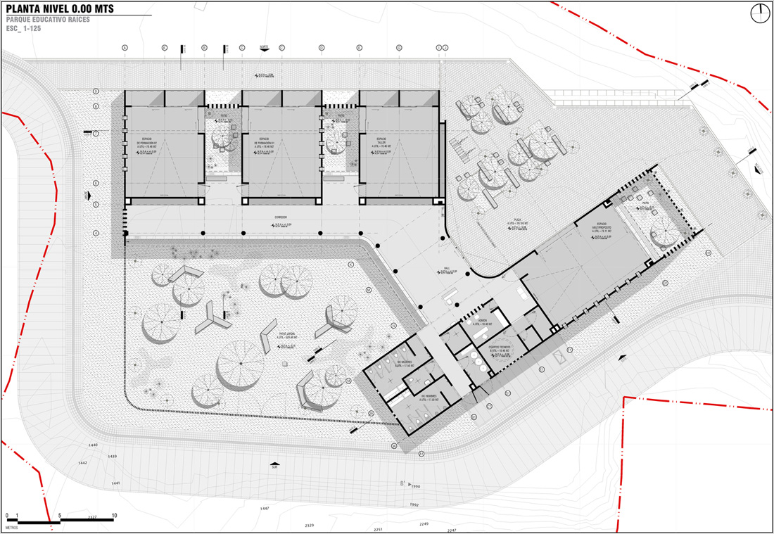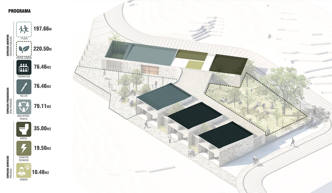 通过院落和花园形成的灵活自由适合开会的空间,让这些活动也延伸到了公共空间,而这所有的空间被理解为对那些遗失了的 Peñol 传统建筑里露台和大厅的使用和学习,这被视为项目中重点表达的核心。