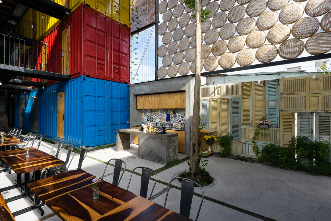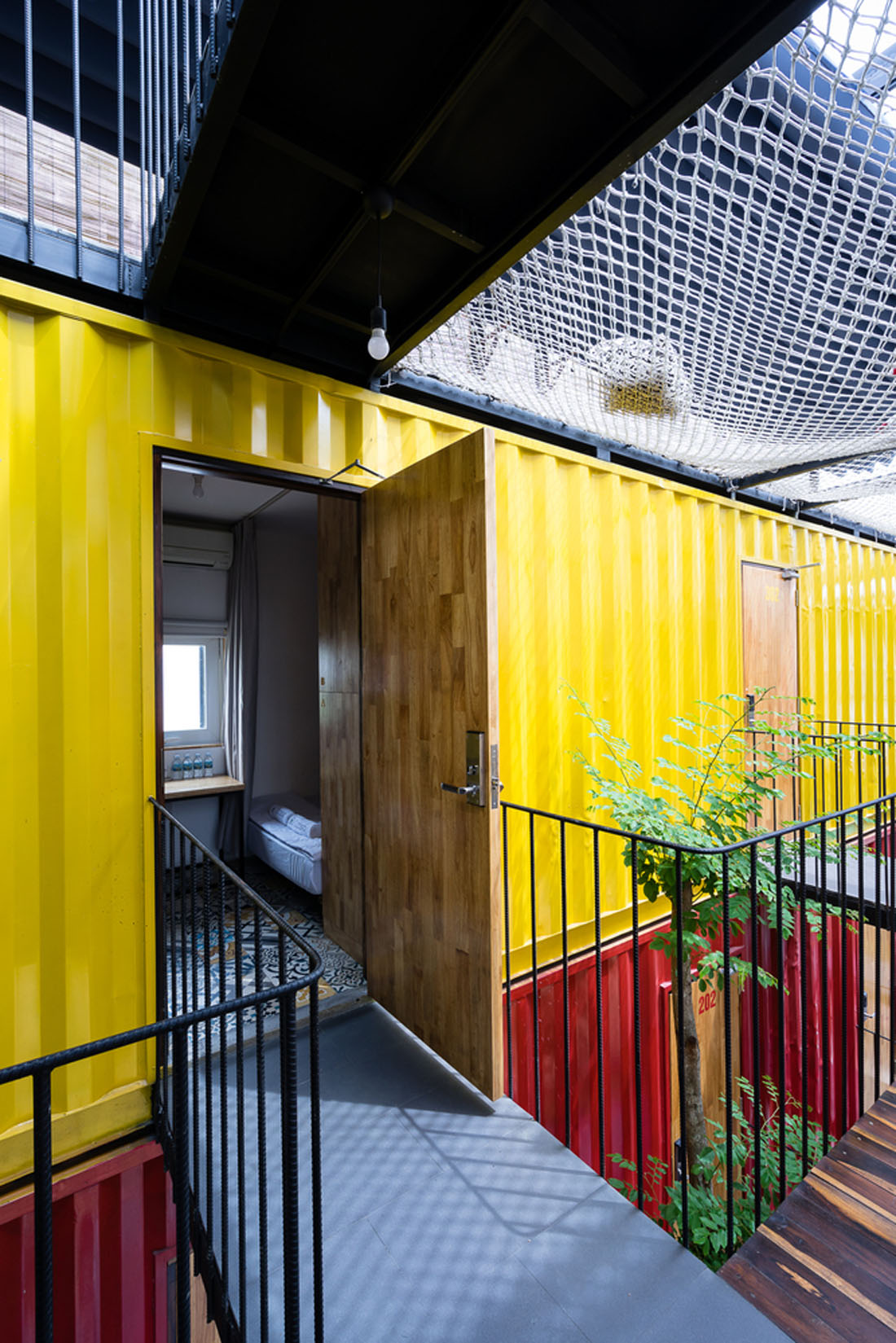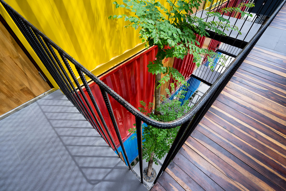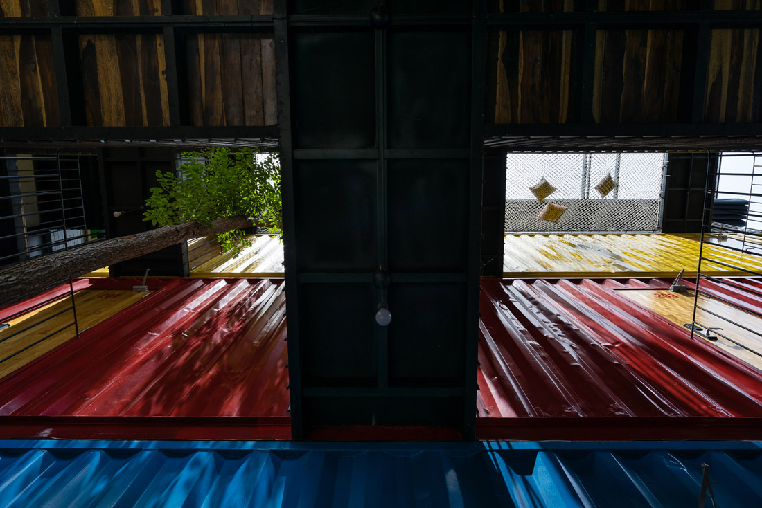 通过使用老旧的集装箱,钢架和绿树,凉棚,Ccasa青旅带来了强烈的工业感,但又不失自然的感觉。此外,还巧妙地使用了水泥砖,旧木窗,扁平风筐,粗制水泥巧妙的吸引了注意力,并唤起一些越南老建筑影像。青旅周围的绿色凉亭不仅使它看起来更绿色,而且还起到第二层皮肤的作用,以防止阳光直射和冷却室内空气。