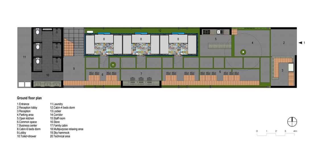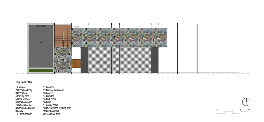 这是一个背包客旅馆,把住在旅馆的世界各地的人们都可以联系到一起。Ccasa的功能就像家庭住宅一样,卧室内有舱室床,还有厨房和起居室共用区域,露台屋顶作为娱乐室。因此,床位空间被减少到足以睡觉的大小,相反,共享空间扩大到最大以增加旅行者之间的连接,洗涤区域也是共享的。