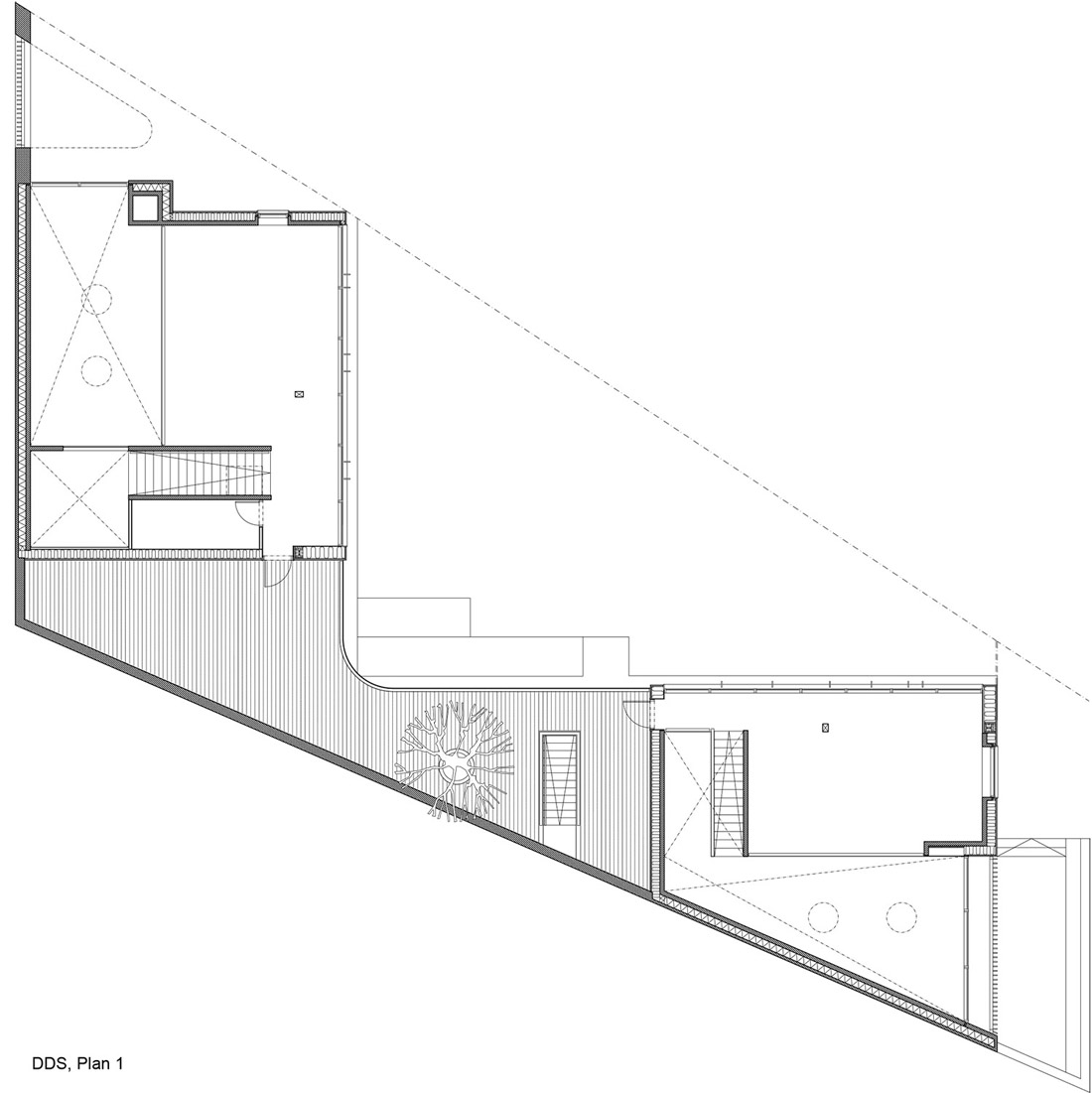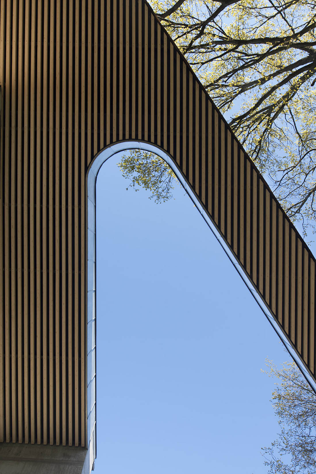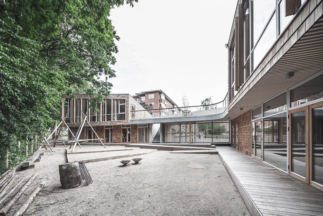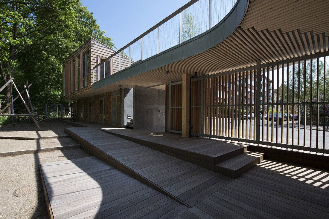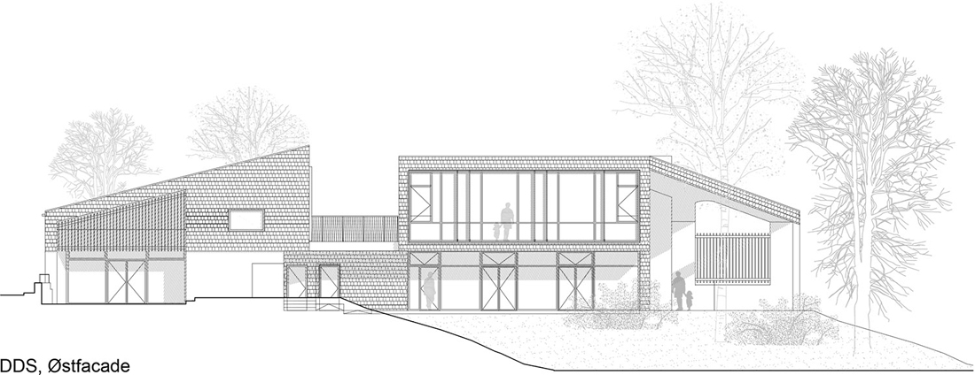 这座新的童子军营及社区公所位于哥本哈根Søndermarken公园的后方,基地沿着道路的走向呈长条形——它最窄处不超过10米,但东西方向的长度为80米,且有近3米的高差。Søndermarken公园中的大树,让这块基地拥有了更多特别之处。
