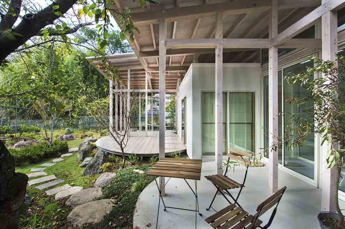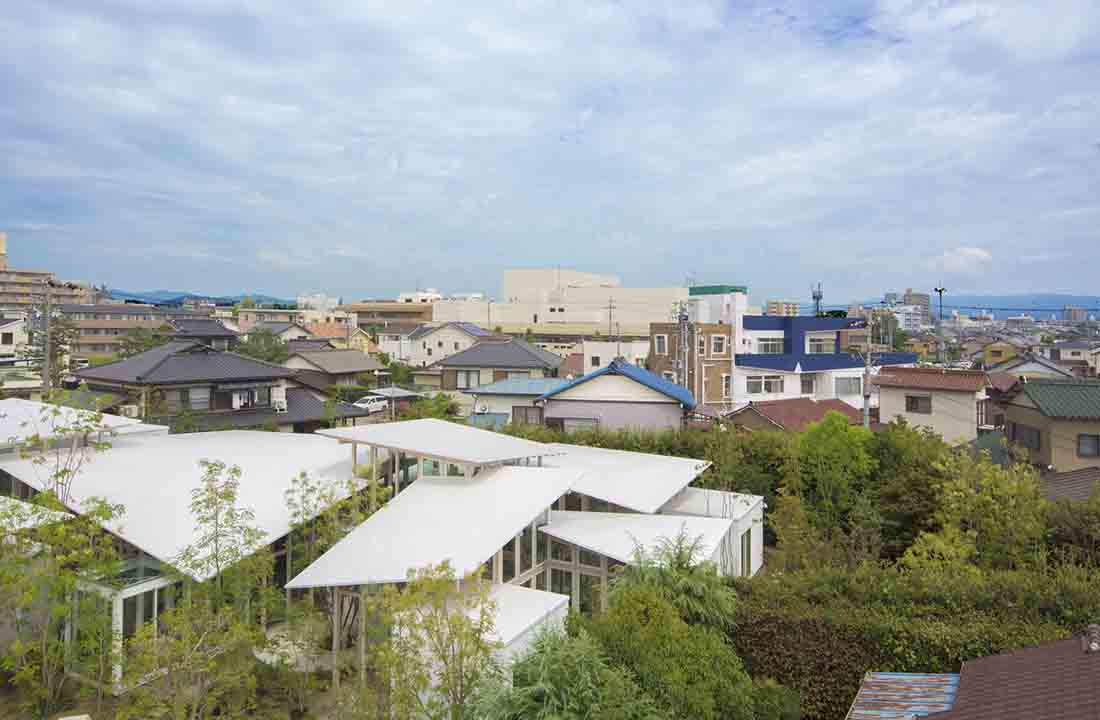 该项目位于日本爱知县,周围区域与维护良好的城市景观不同,基地上留有一条狭窄的倾斜路径,场地也因这条对角狭窄路径而变得不规则,周围还有许多带栅栏和树篱的房子,所以此次设计面临的关键问题在于如何将它们与空间构成联系起来。