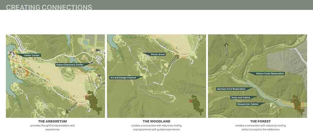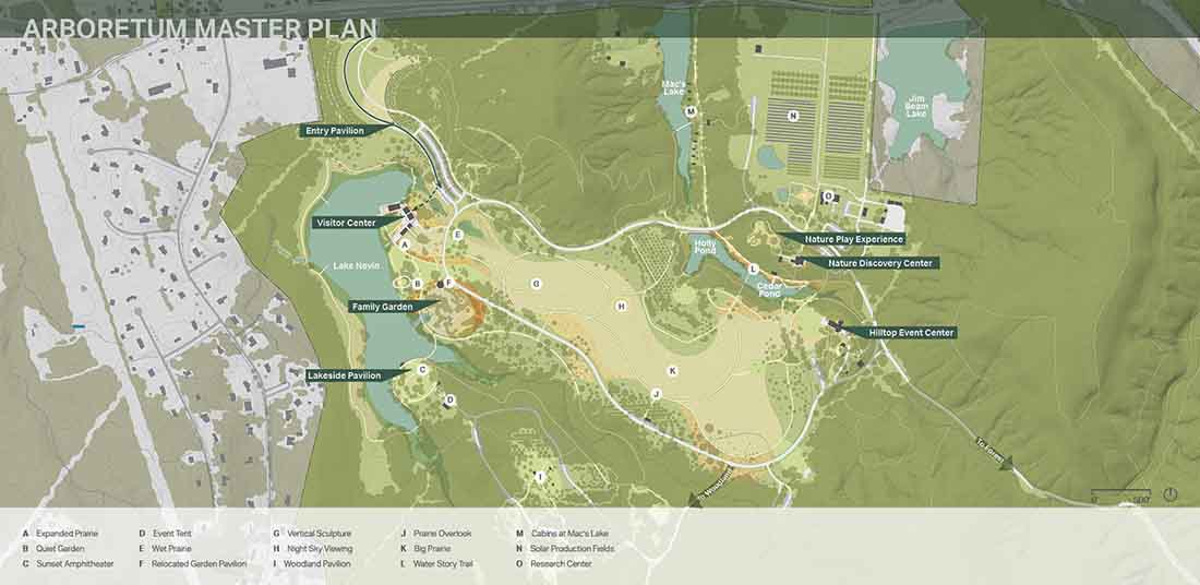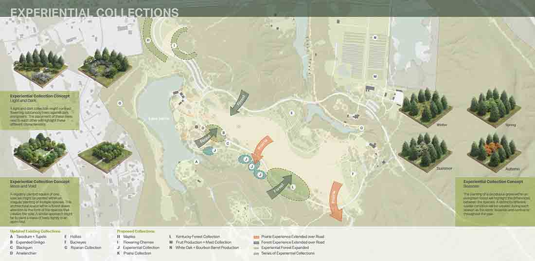 总体规划的完成将使现有的树木与路径更加接近,使游客更方便地获得与这些植物有关的信息。随着树木的老化,植物园的各个区域也会得到重构。新的树种展示区将创造出有意义的审美体验,以前所未有的方式加强游客对于树木品种的认知。新品种的种植还将为伯恩海姆提供更多的试验机会,良好的韧性使其更容易适应肯塔基州的气候变化。