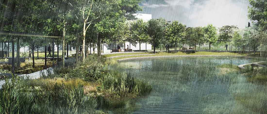 无论项目的规模大小,在地形、水文、植被和项目最终用户之间达到平衡一直都是这个项目的核心设计理念。景观设计原则应用于协调工业和自然,创造一个环境双赢的局面,平衡社会互动与生态系统的多样化,同时恢复被忽视的自然栖息地。