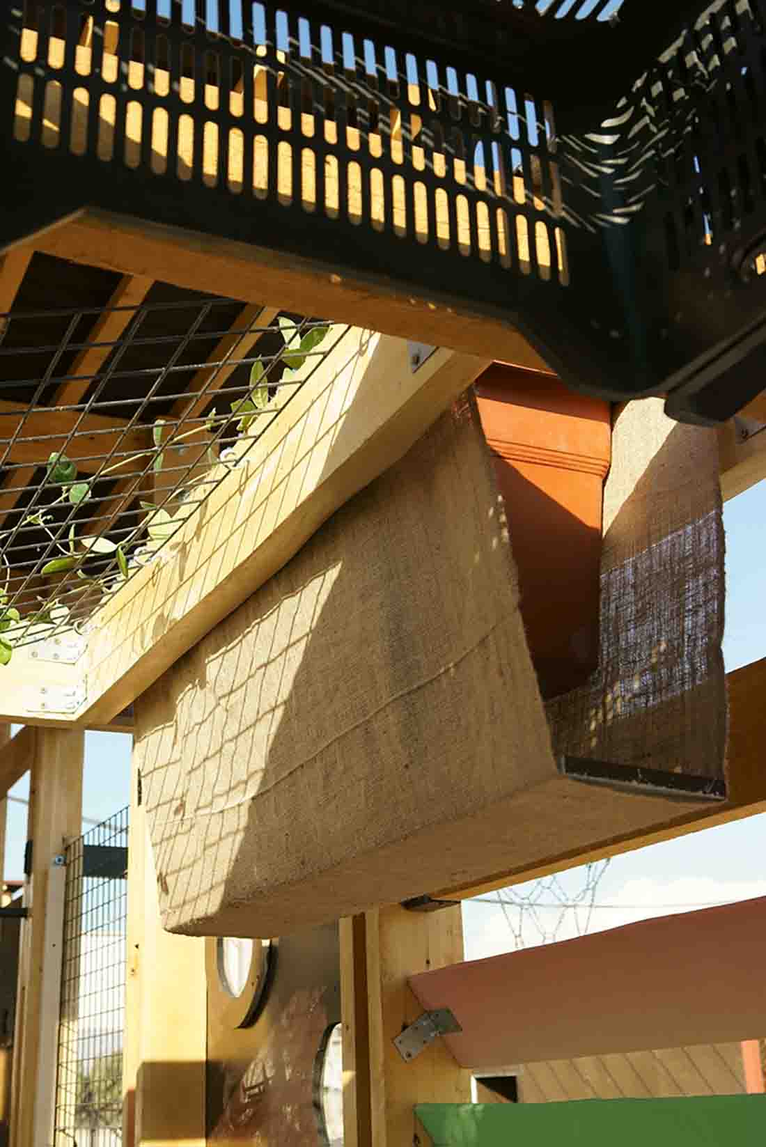 游乐场的设计使其易于组装,拆卸,运输,然后可以重新组装或重新利用。重要的一点是,操场必须是临时建筑。该设计包括一个模块化的木结构,并在现场组装。