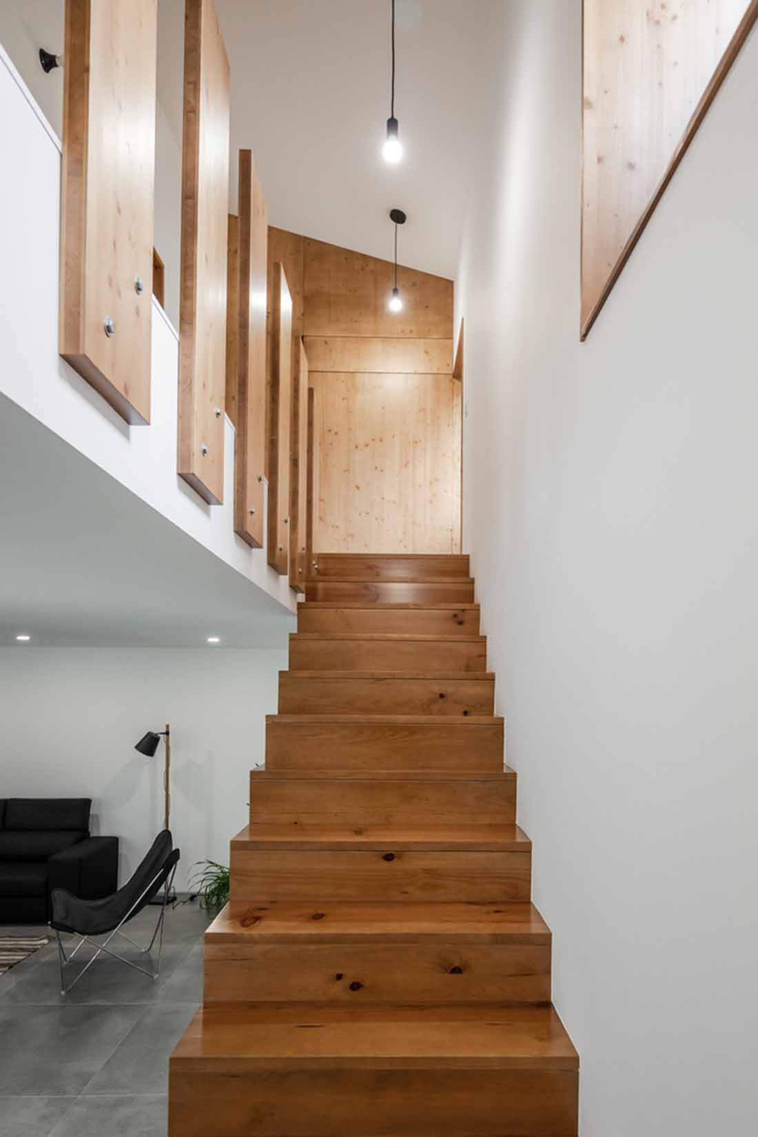 两个露台(朝日出,另一个朝南)是独立的结构,可塑造周围土地的地形,营造出一种加宽的感觉,并允许自然光进入空间,上层则由私人房间组成。从外部看,外部的石材和混凝土坚固性与白色和木材形成对比,营造出轻松活泼的室内空间。